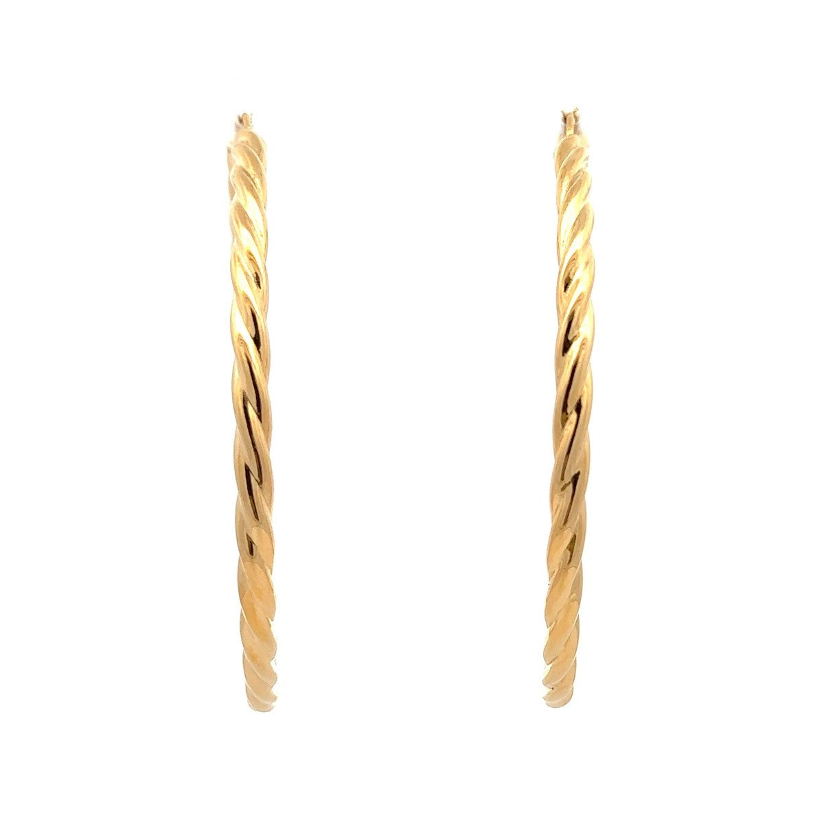 A new pair of Papini twist hoop earrings, set in 18K yellow gold.