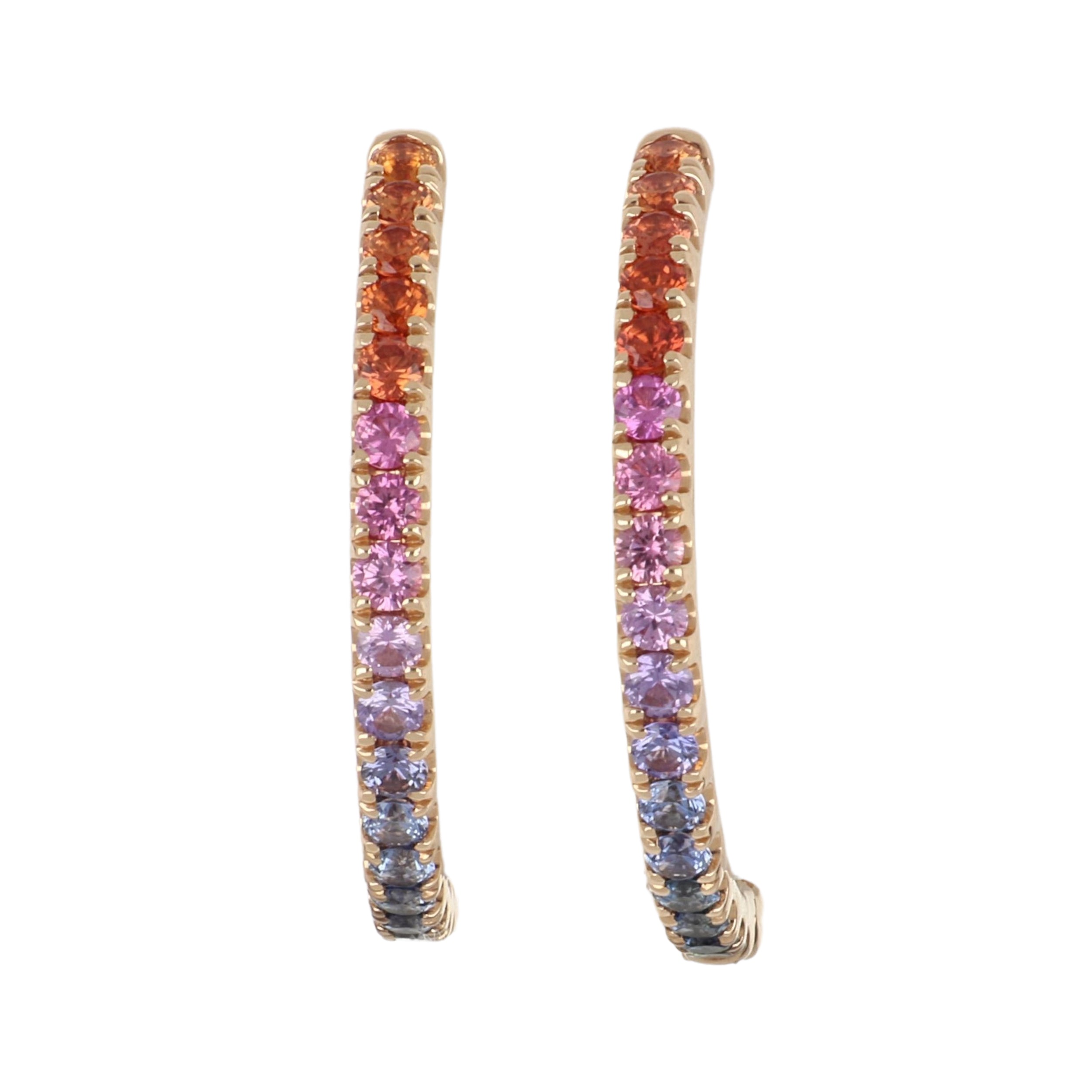 A pair of Lisa Nik 'Rainbow' multi color sapphire hoop earrings, set in 18K rose gold.