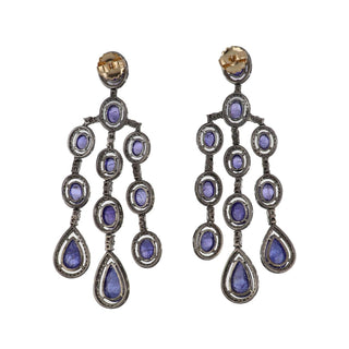 Vintage 1990s 18K White Gold Sapphire and Diamond Checkerboard Button Earrings
