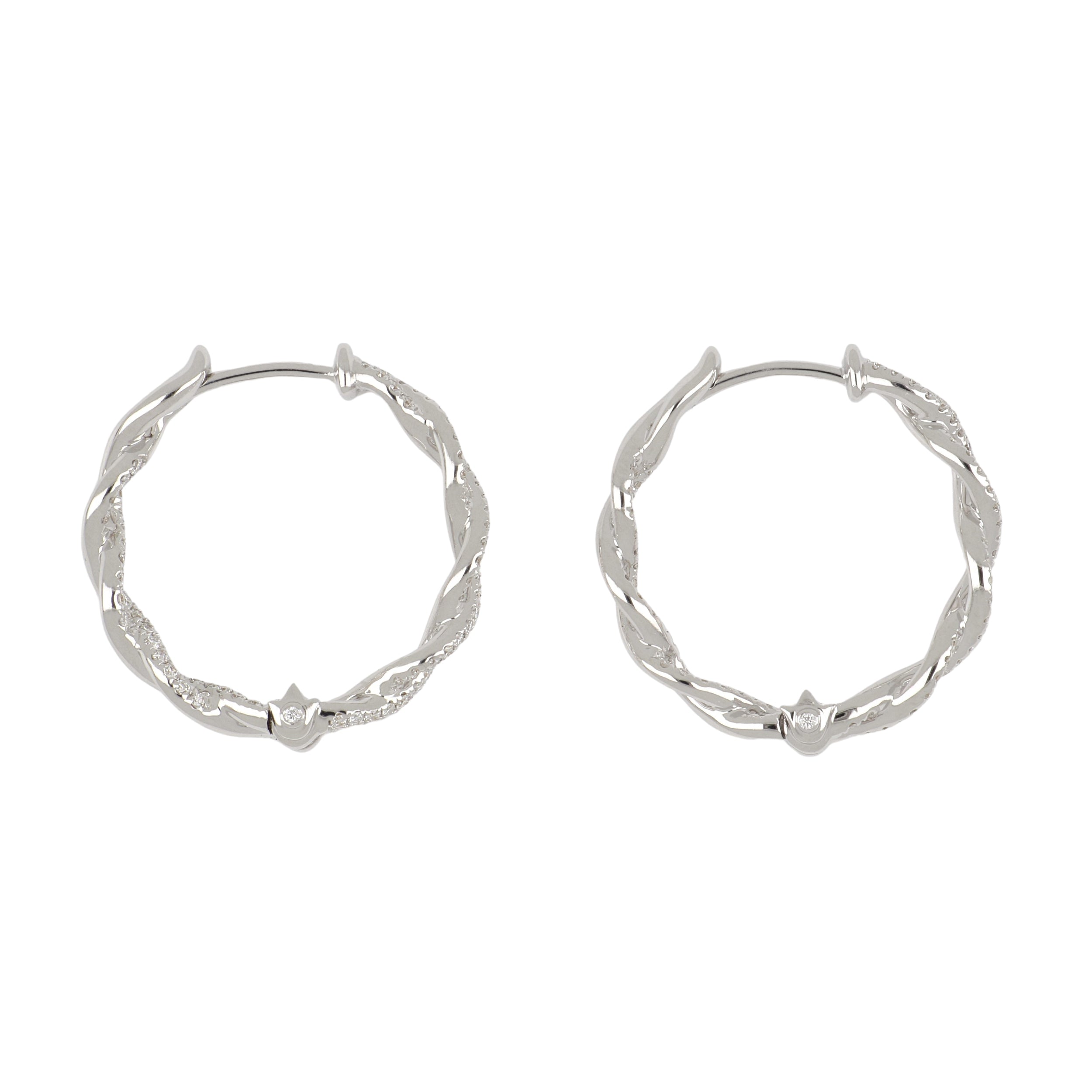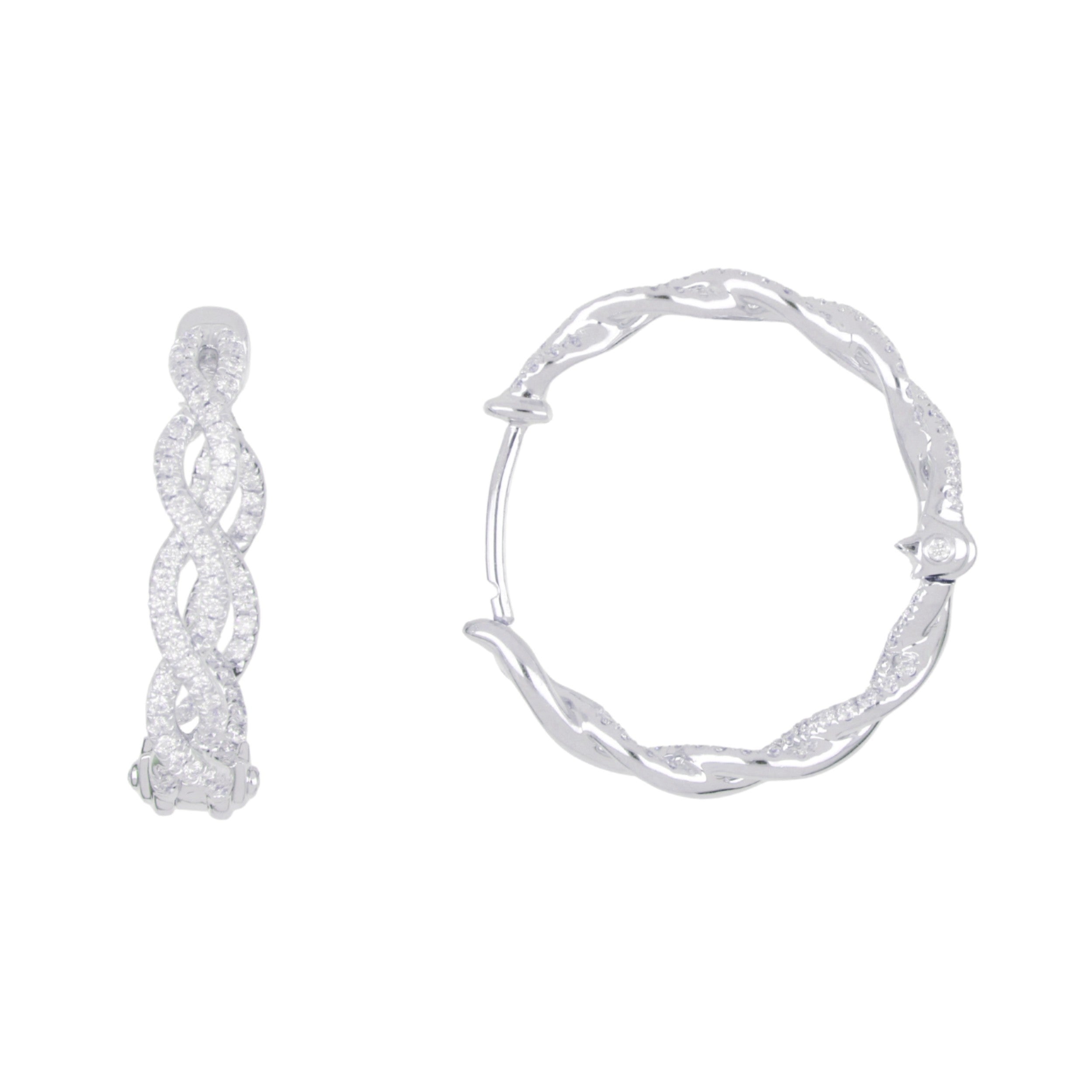 A pair of Verragio braided hoop earrings with diamonds, set in 18K white gold.