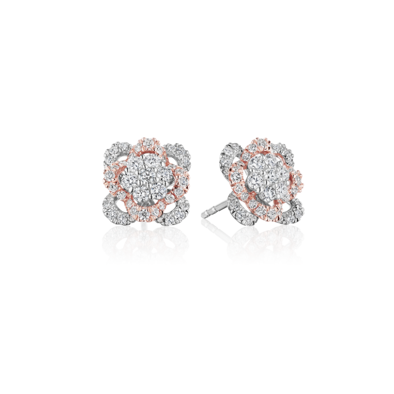 A pair of Verragio 'Veritage' collection floret cluster stud earrings in 18 karat white and rose gold.