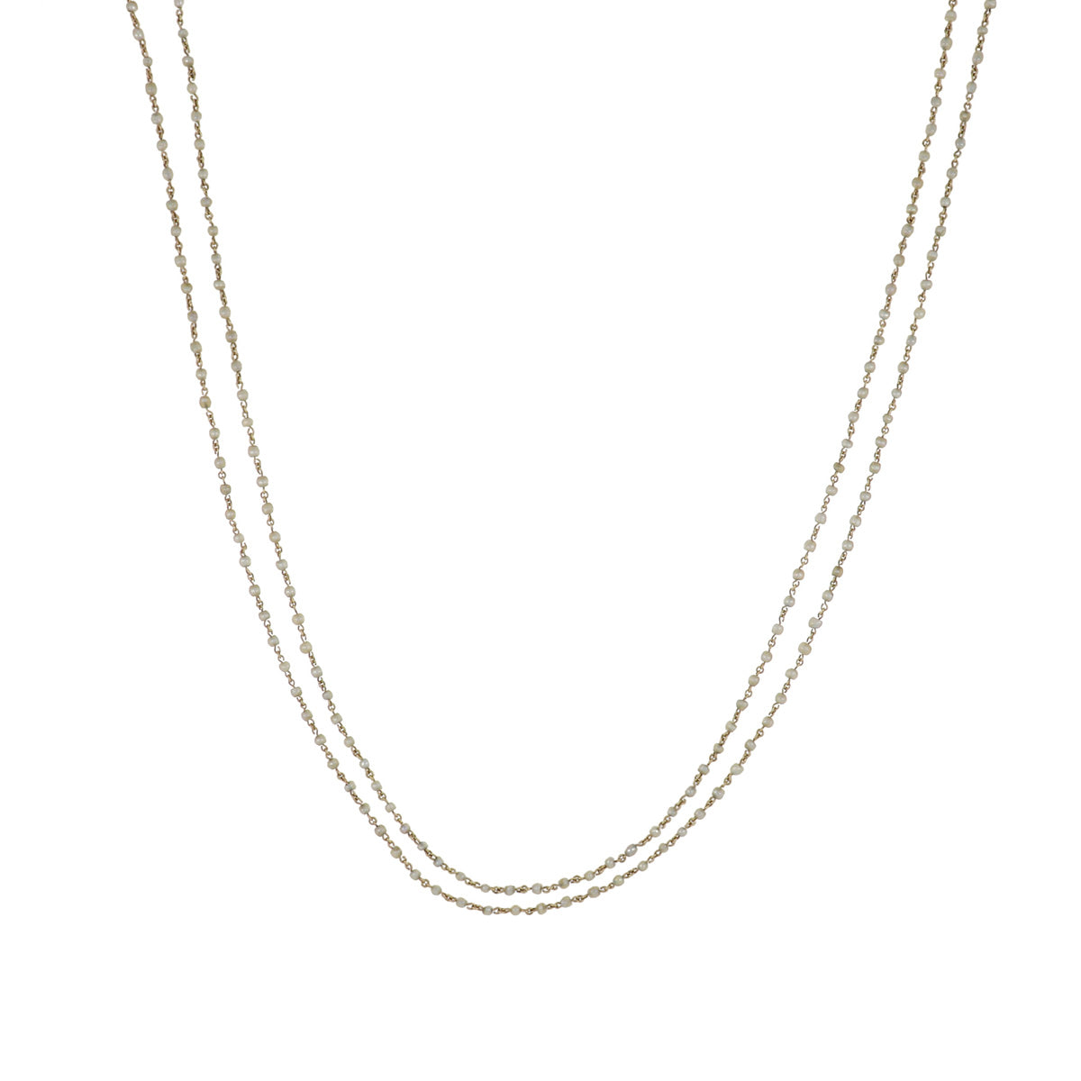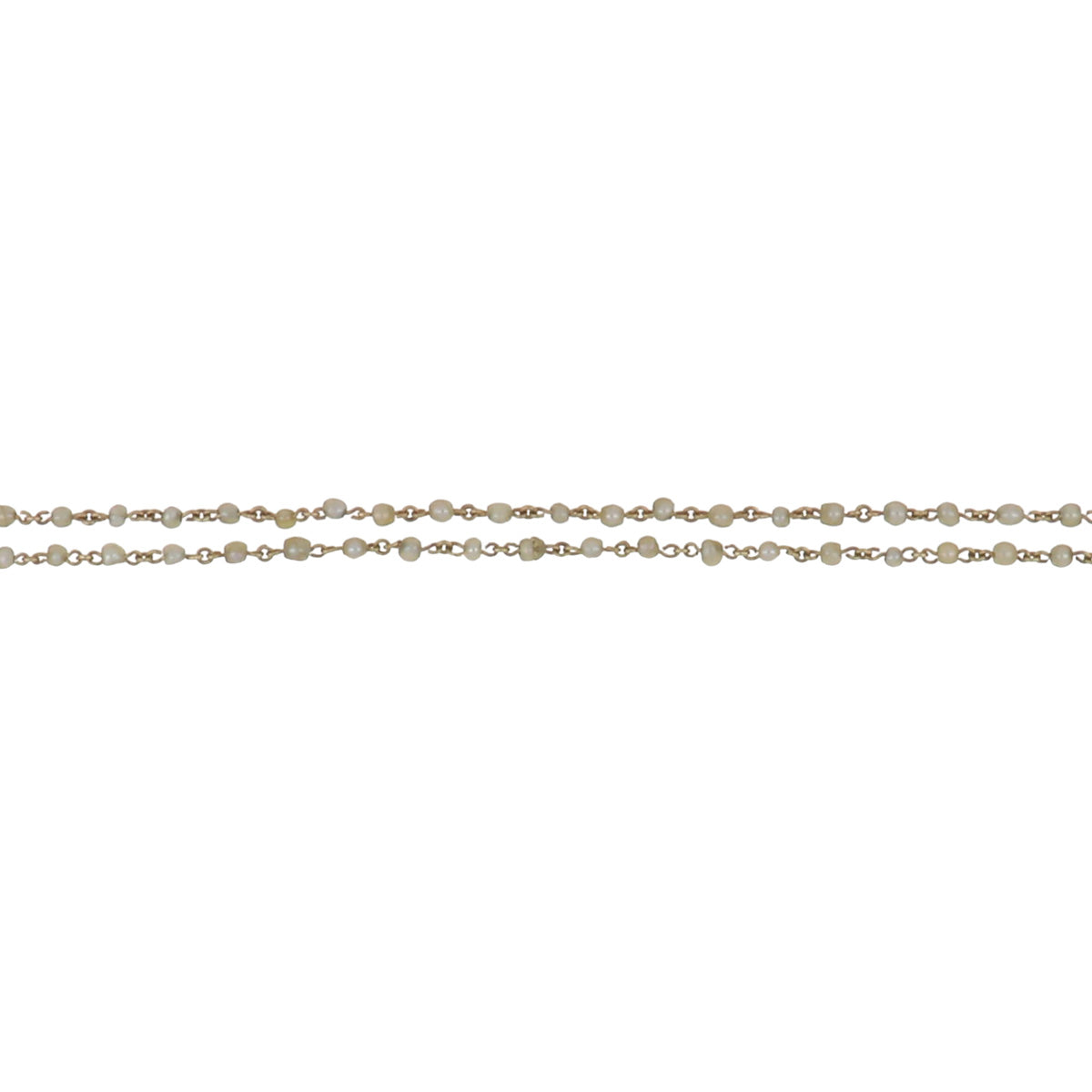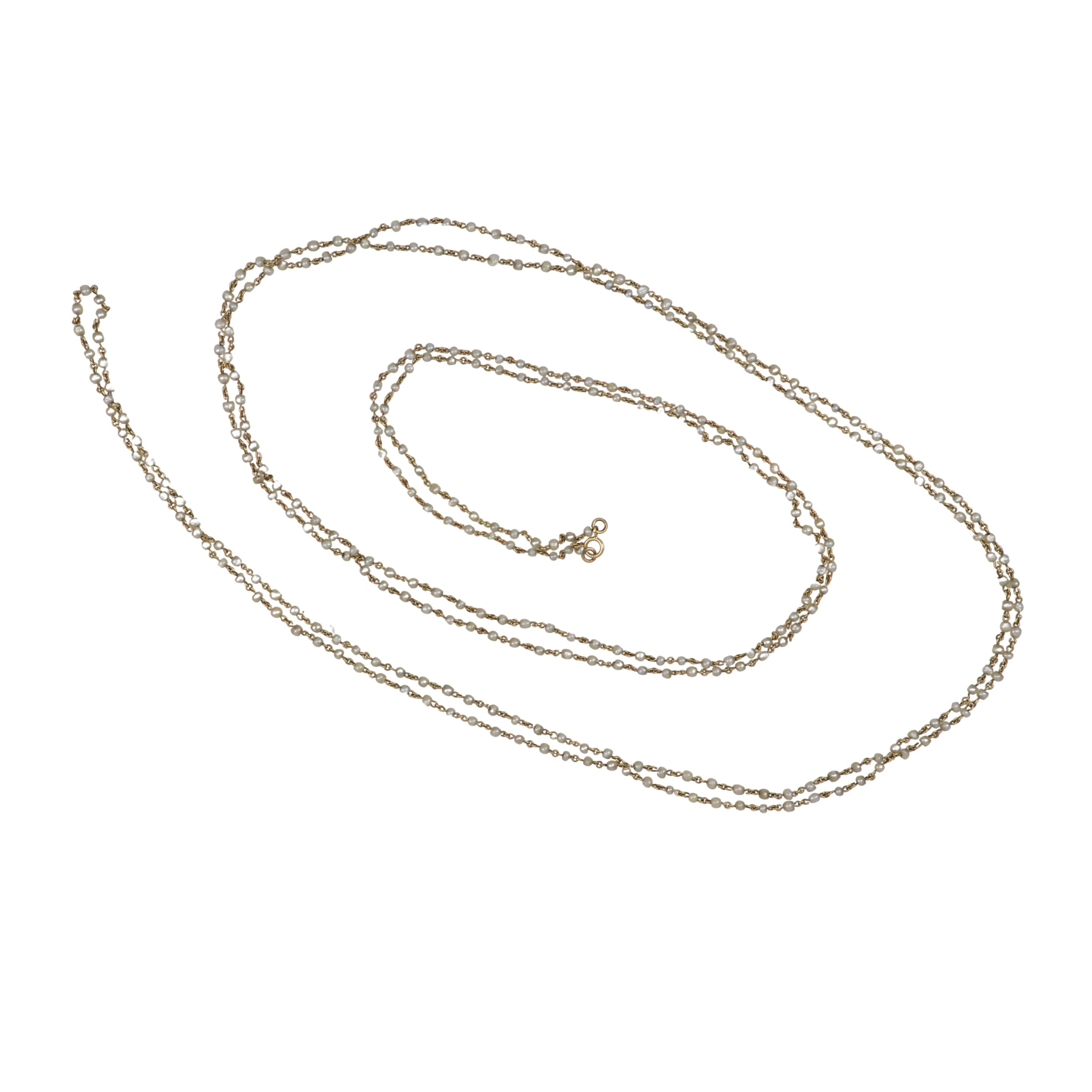 A late Victorian 18K yellow gold seed pearl longuard. Circa 1900.
