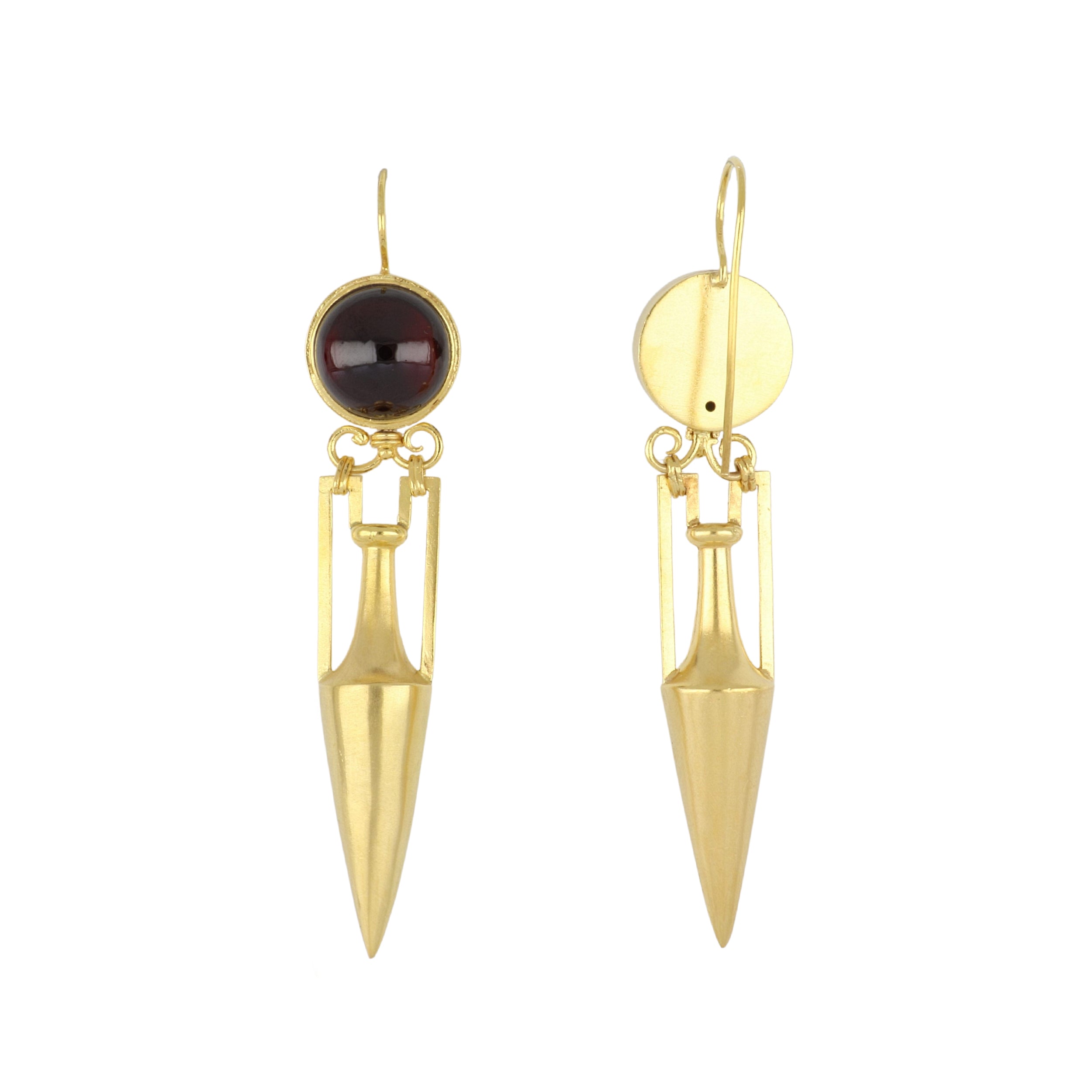 Mid-Victorian 18K Gold Cabochon Garnet Amphora Drop Earrings