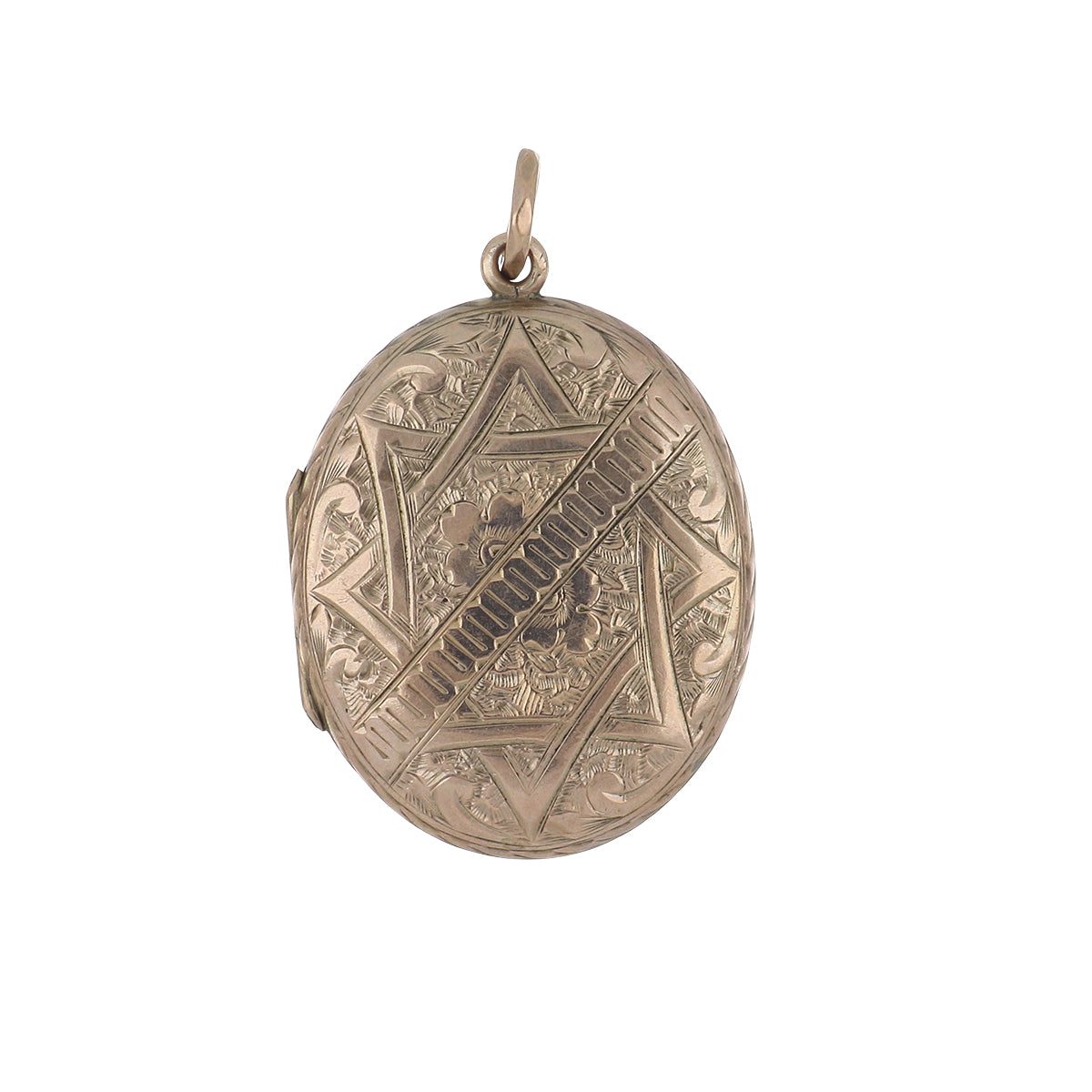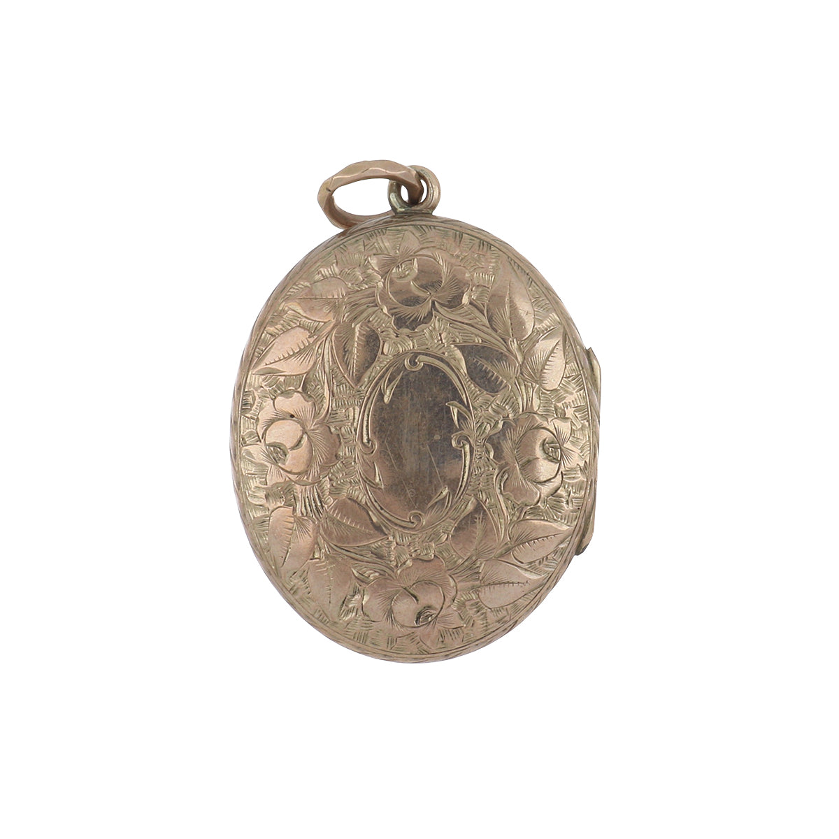 A Victorian 10K rose gold oval locket with floral engraving. Circa 1890.Antique Collection1 x 1 5/8 inches