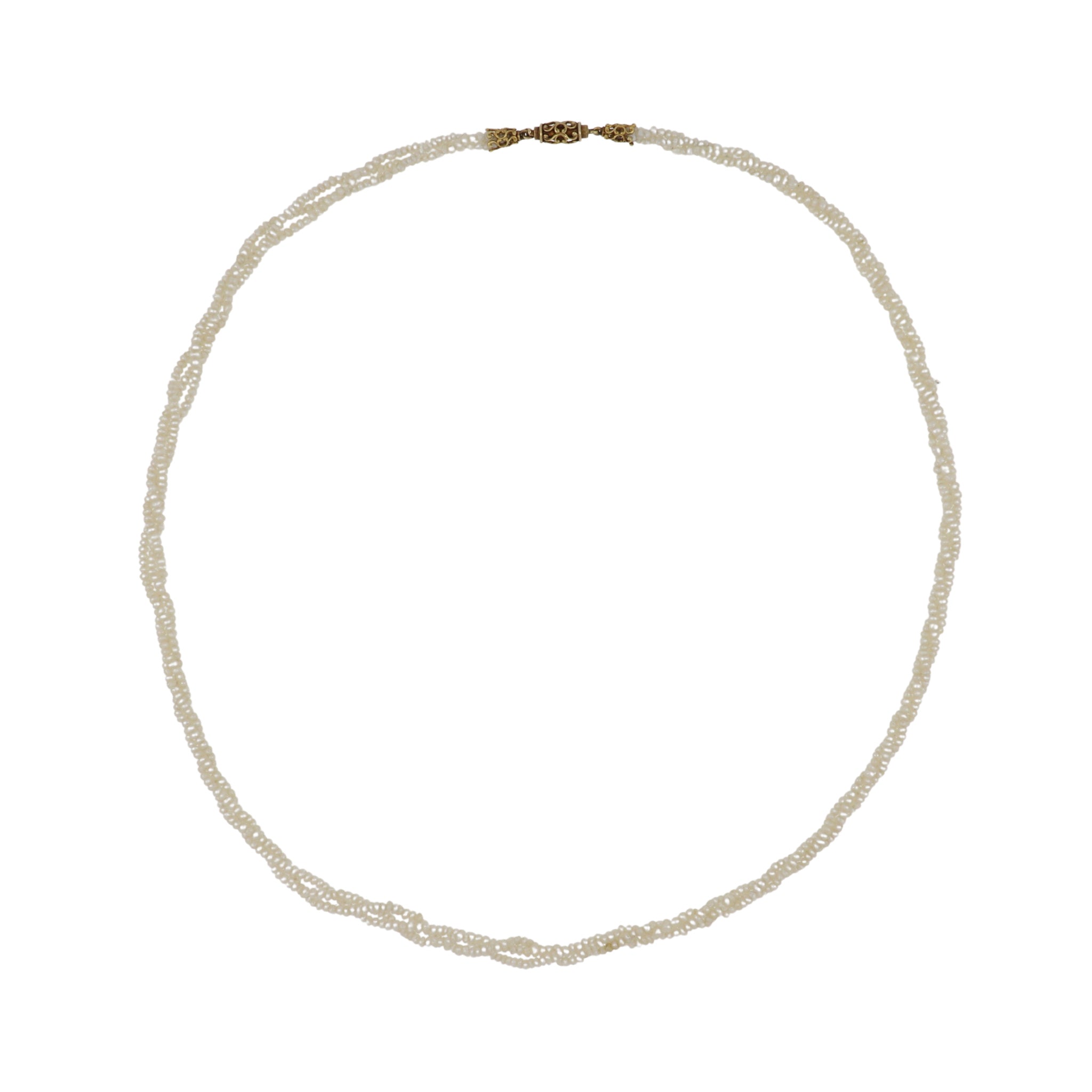 An early Victorian twisted seed pearl necklace with a 14K yellow gold. Circa 1840.