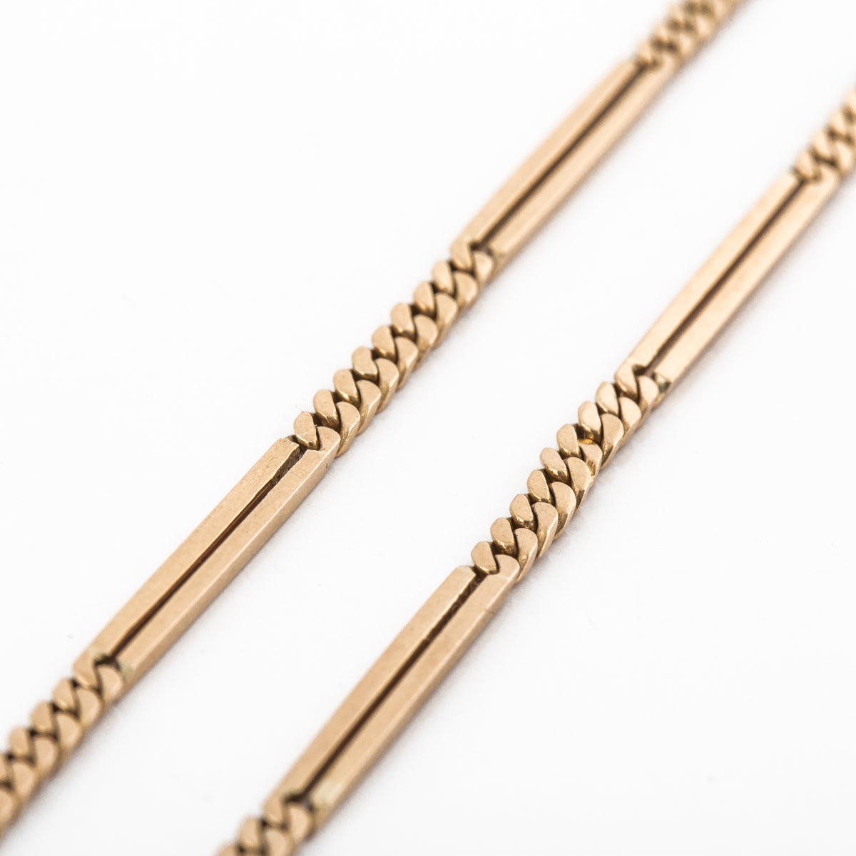 A Victorian Hungarian/Viennese 14K rose gold flat link chain necklace. Circa 1850.