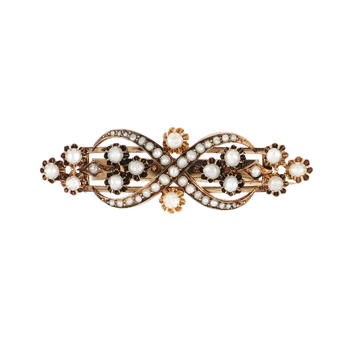 An antique classic Victorian 14K rose gold split pearl bar pin with 'X'. Circa 1860.Antique Collection