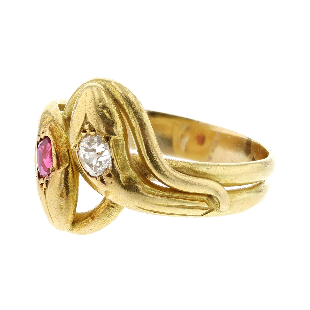 Victorian 18K Gold Serpent Ring with Diamond and Ruby