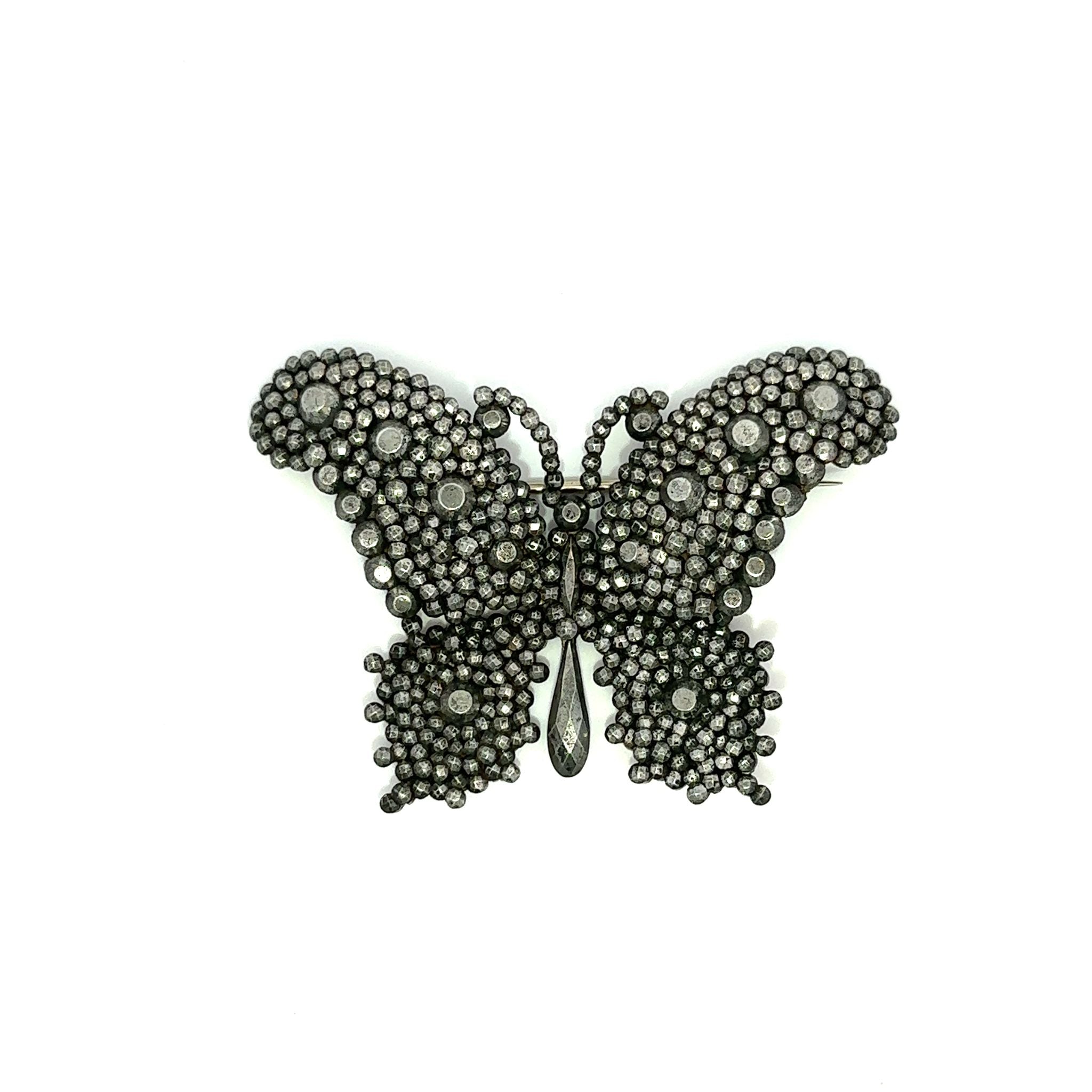 An antique, Victorian cut steel butterfly pin. Circa 1840.