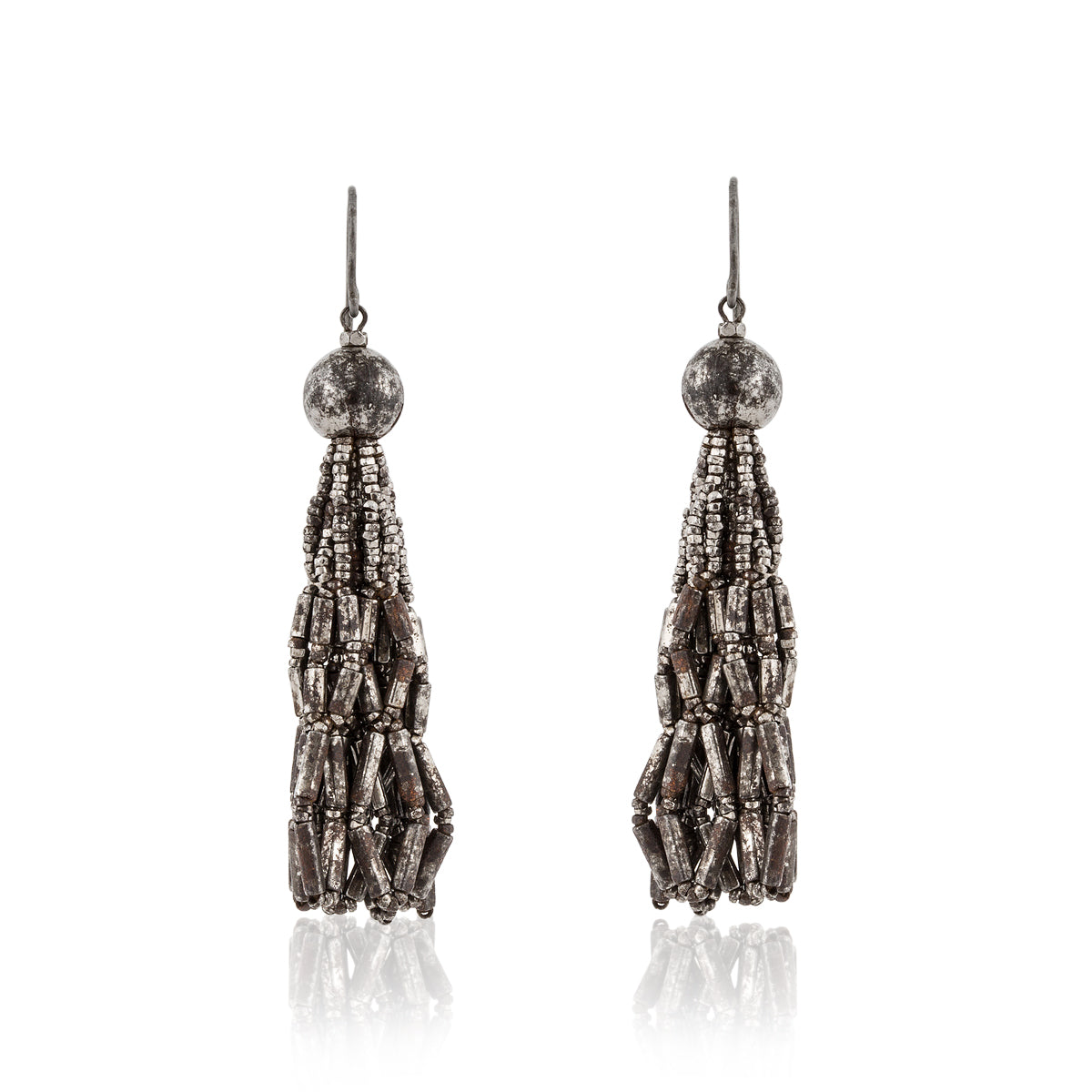 A pair of antique Victorian cut steel multi-strand drop earrings.