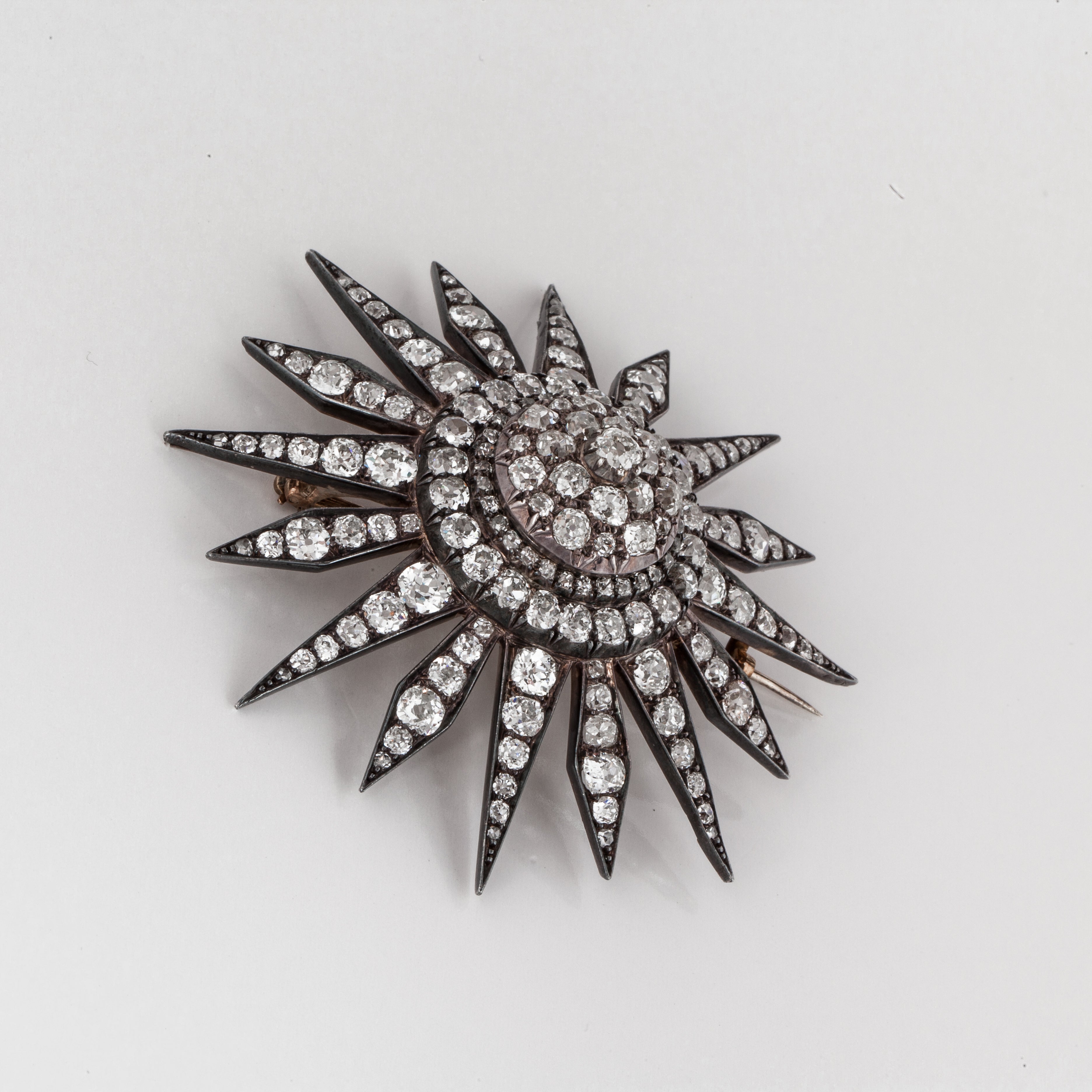 Victorian Silver Topped Gold Starburst Diamond Brooch