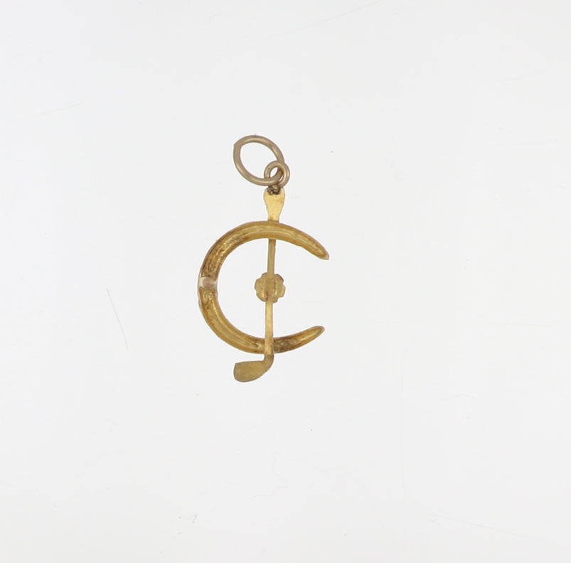 A Victorian 10K yellow gold faux pearl horseshoe charm.