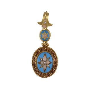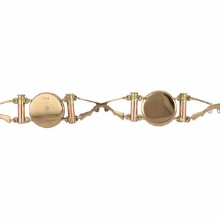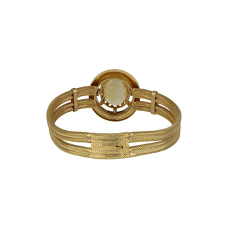 Victorian 18K Gold Topaz, Pearl and Diamond Bracelet with Black Enamel Tracery