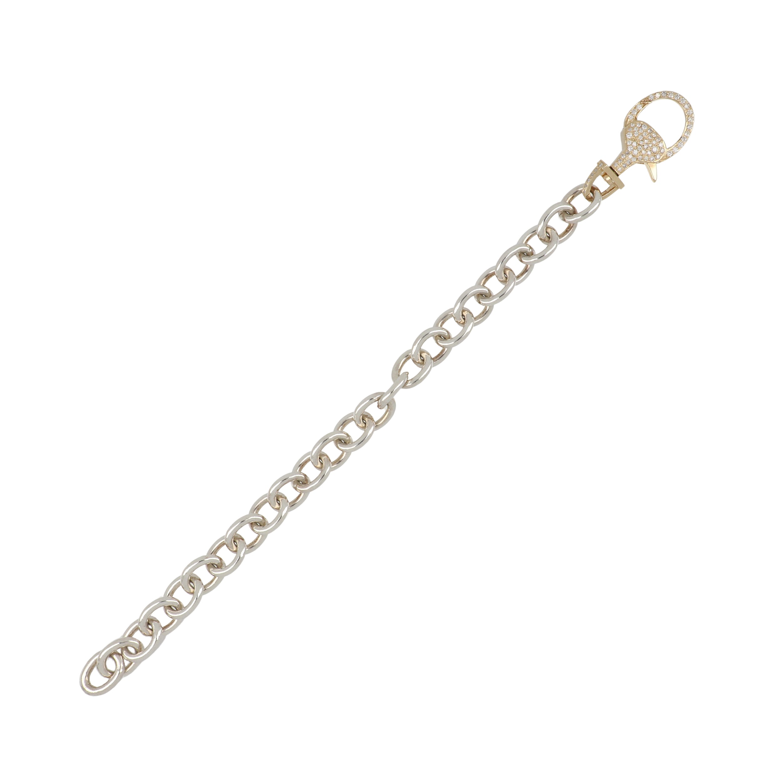 A new vincent peach equestrian sterling silver link bracelet with a 14K yellow gold stirrup pavé diamond clasp.
