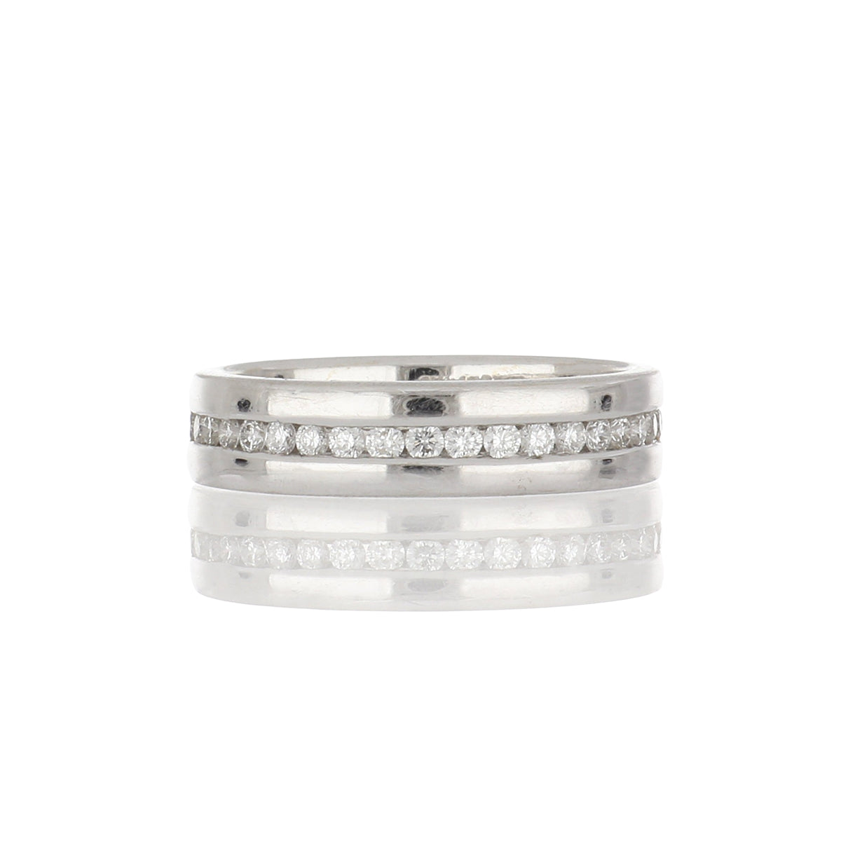 An 18K white gold band with channel-set diamonds. Circa 2000