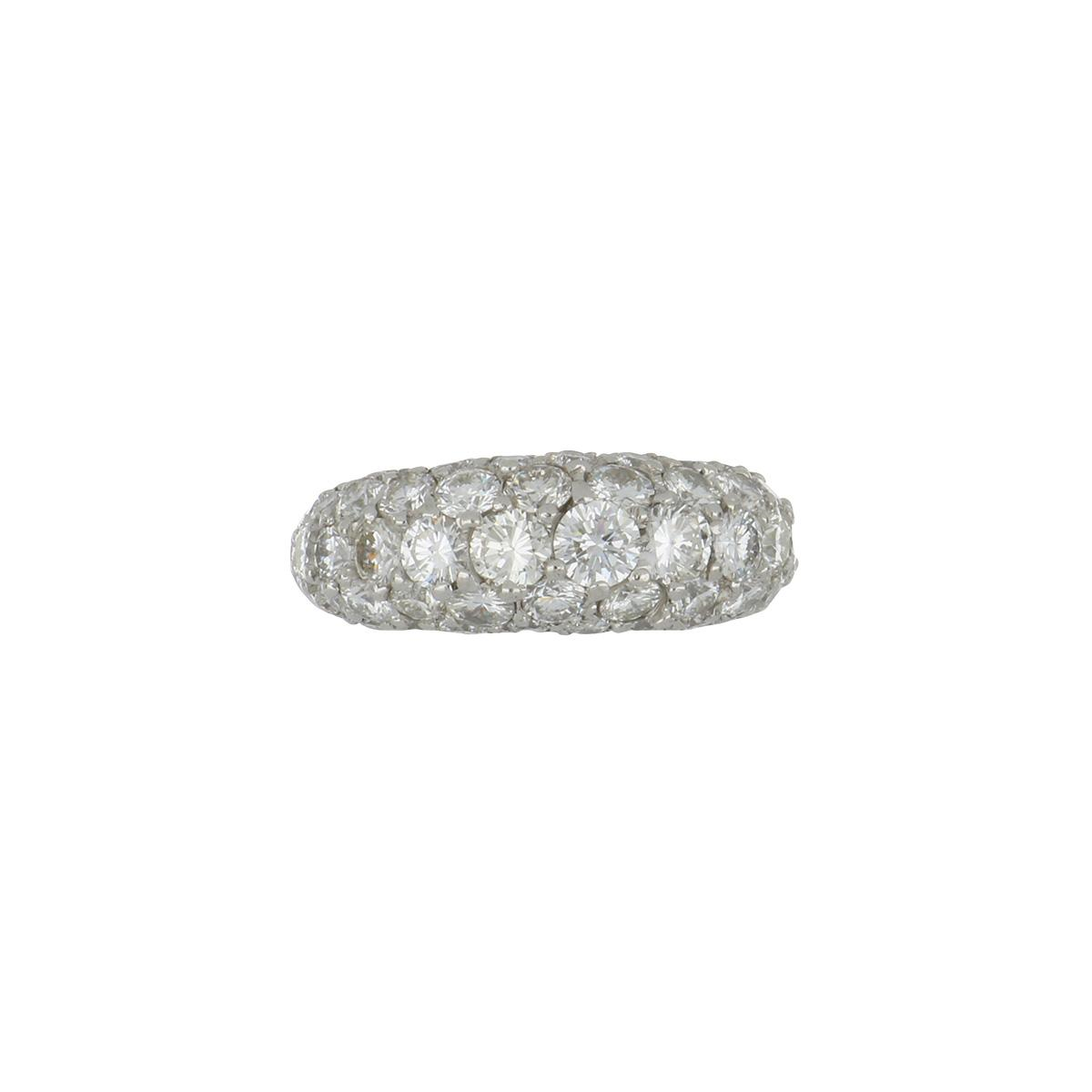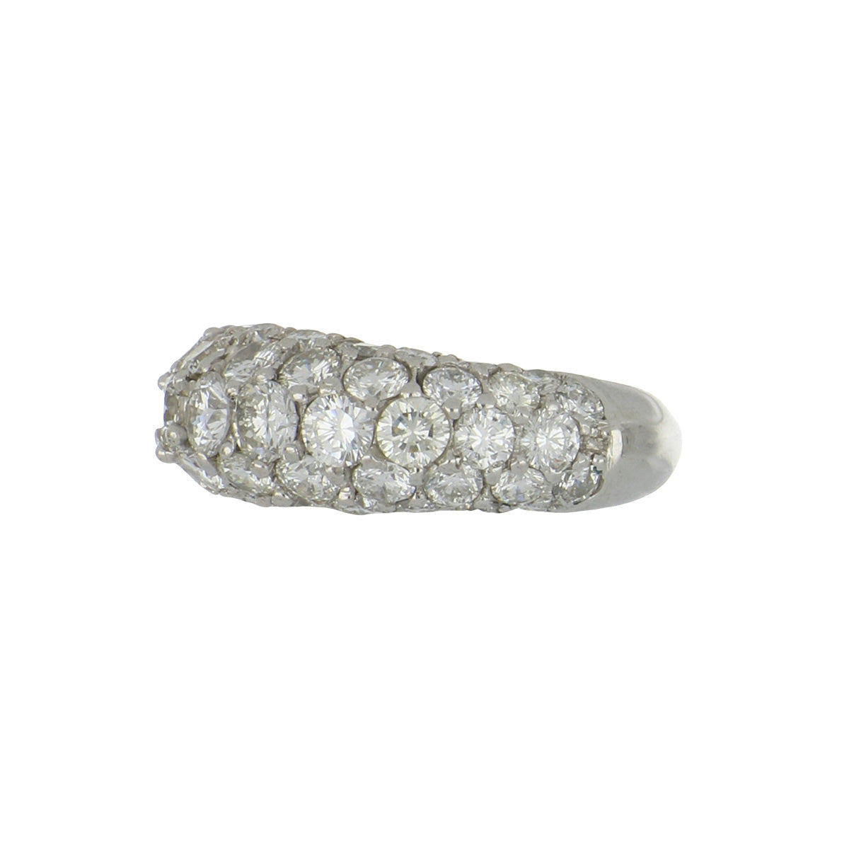 An estate 14K white gold diamond domed band. Circa 2000.