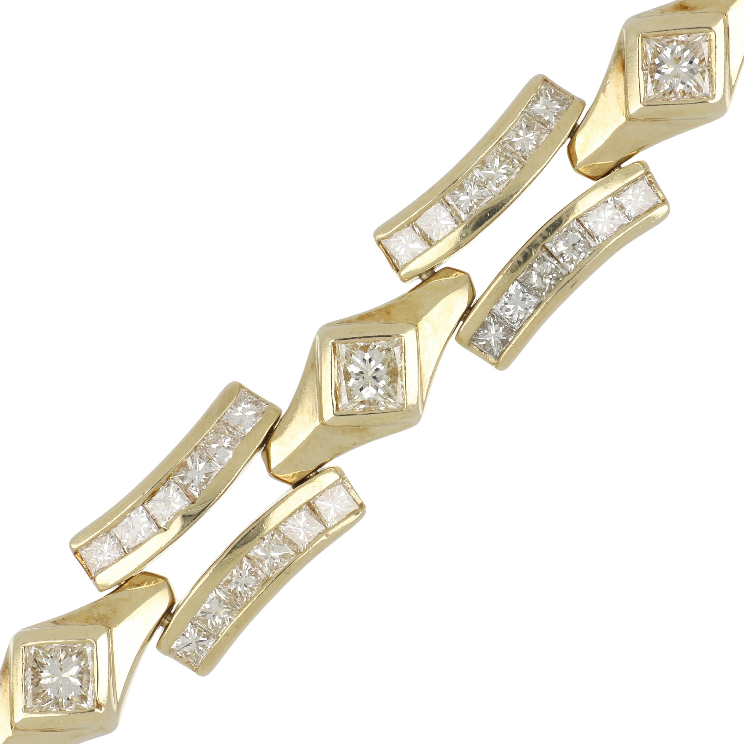 Estate 14K Gold Princess-Cut Diamond Link Bracelet
