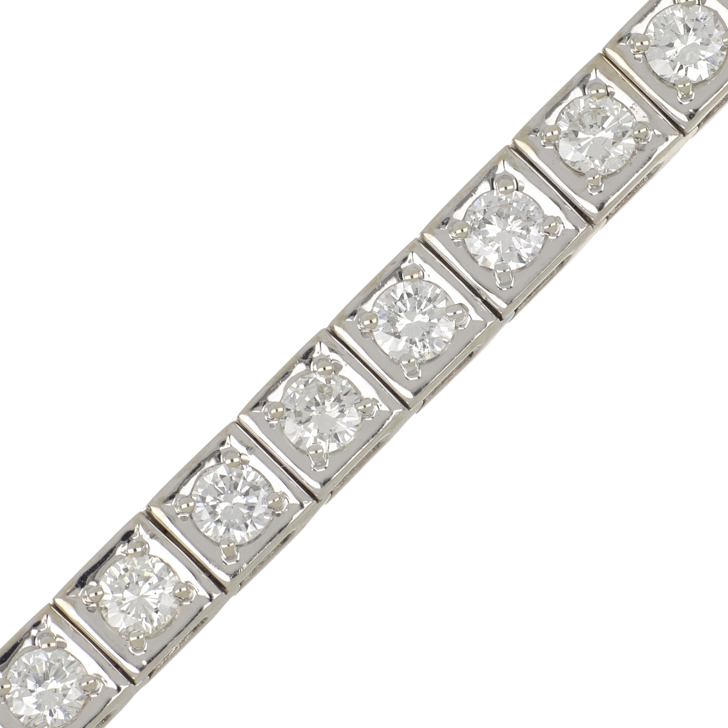 An estate box shape link bracelet with four prong set round brilliant-cut diamonds, set in 14K white gold. Circa 2000