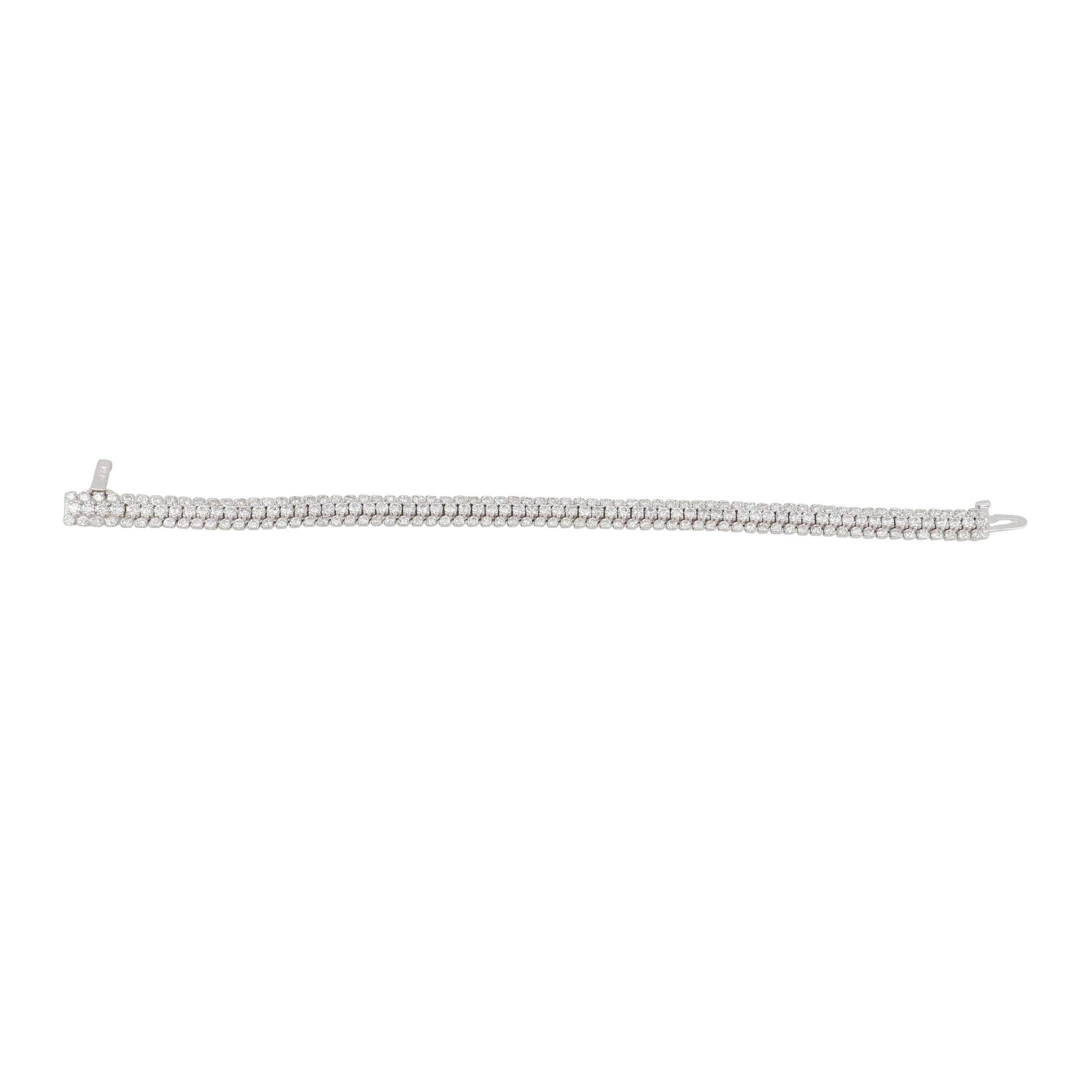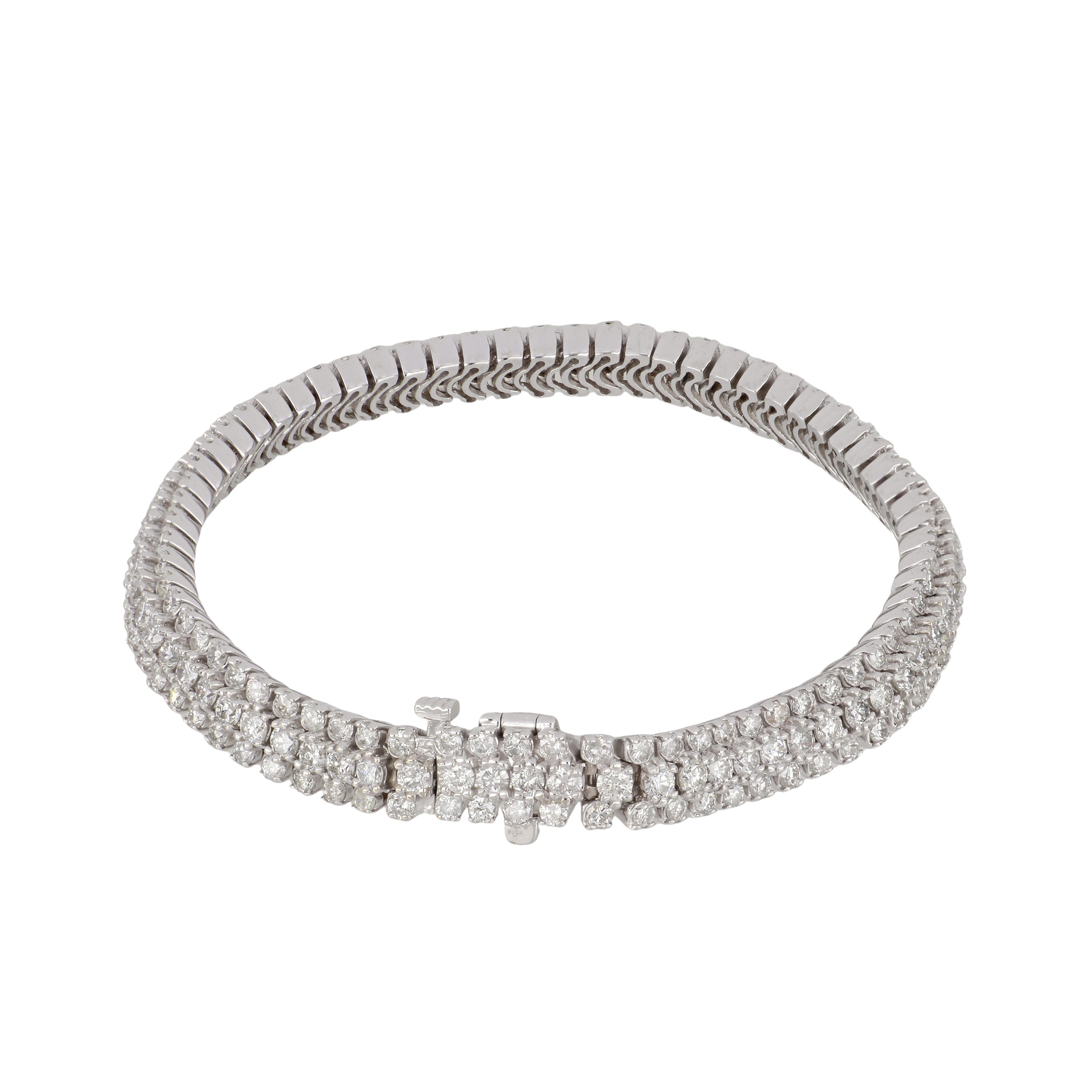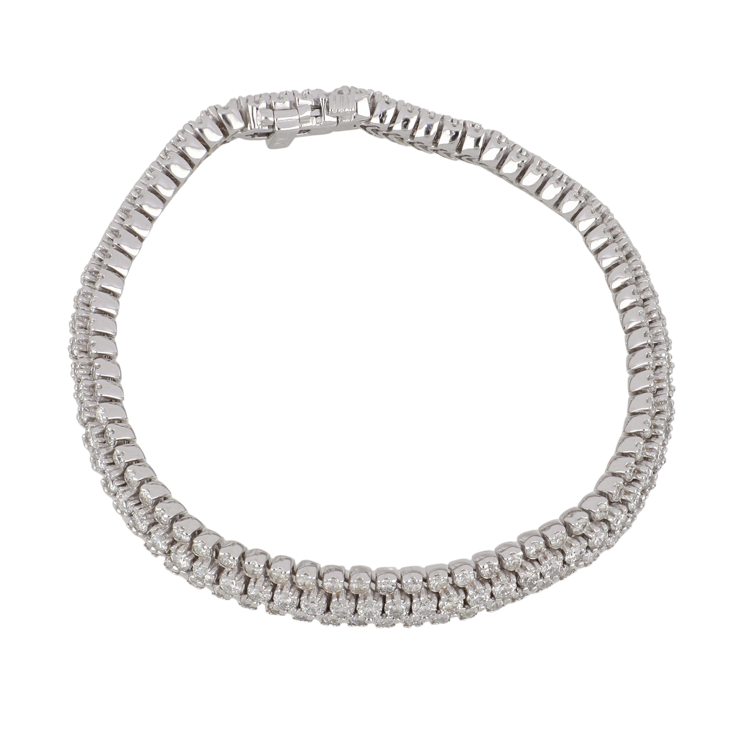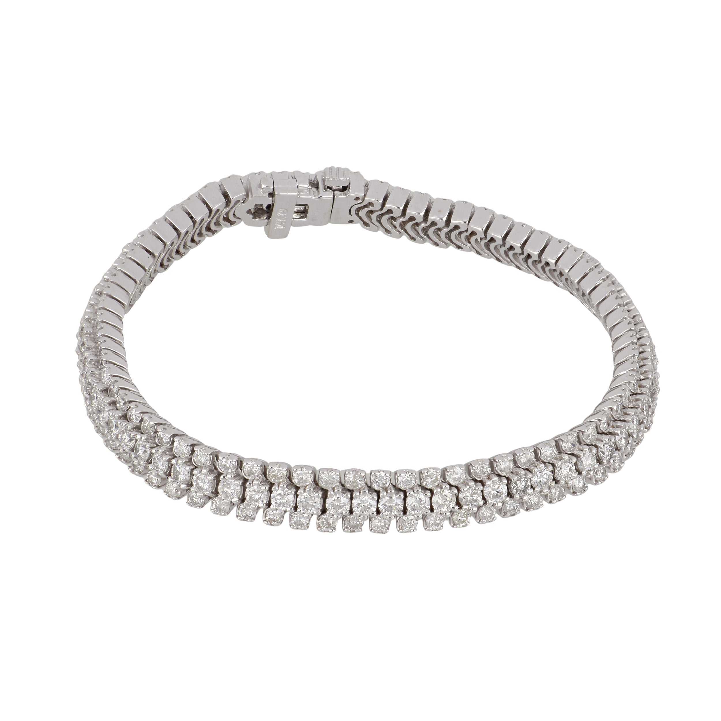 An estate modern, three row round brilliant-cut diamond line bracelet set in 14k white gold. Circa 2010.