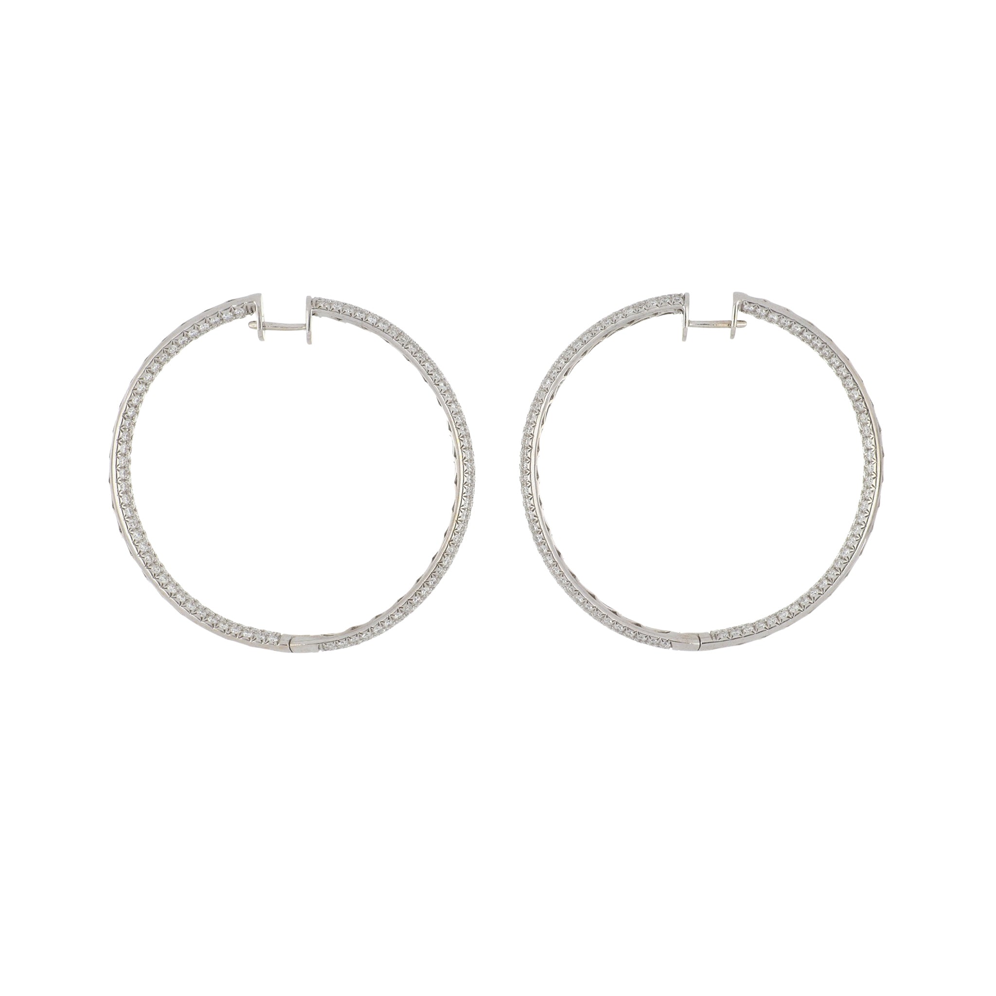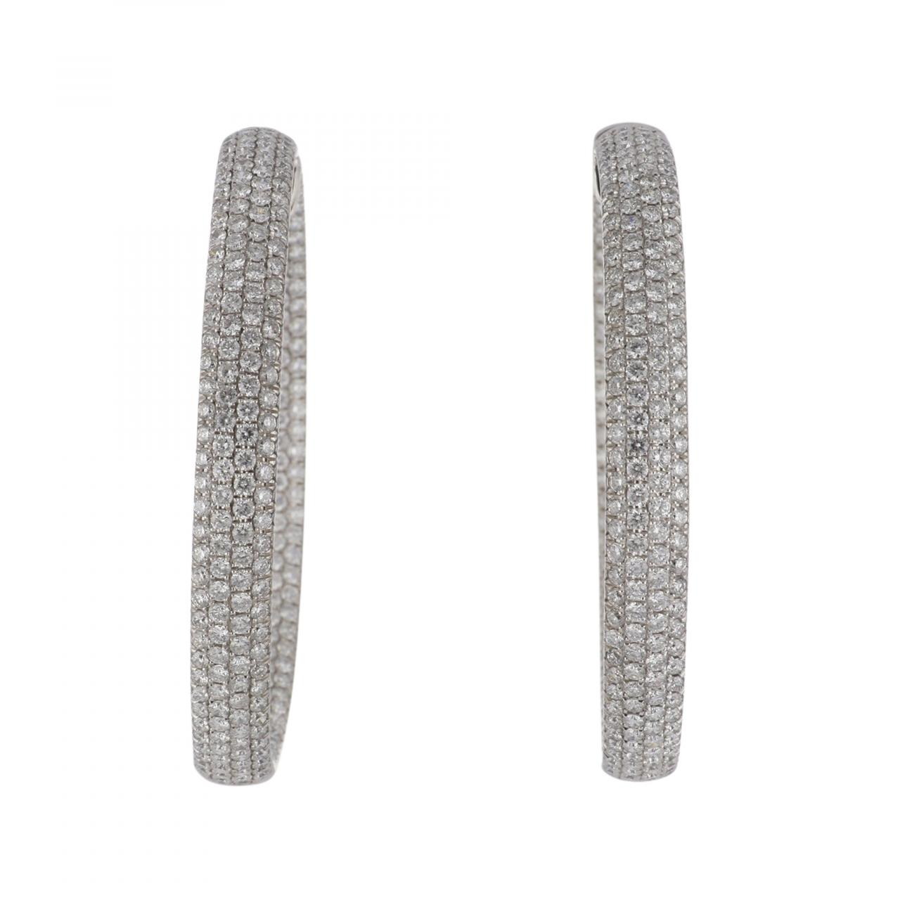 A pair of 18K white gold large pavé diamond hoop earrings. Circa 2010