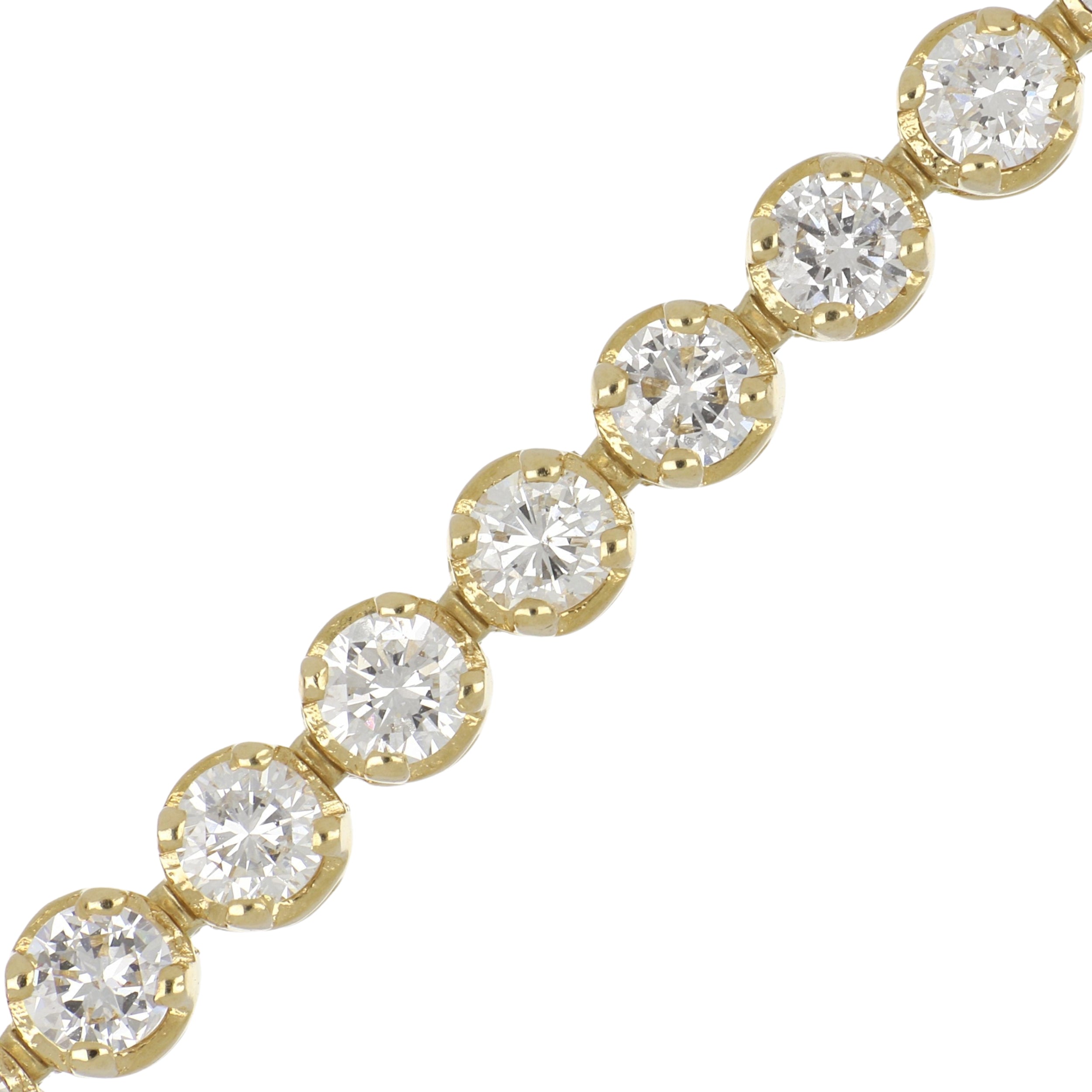 An estate round brilliant-cut diamond line bracelet set in 18K yellow gold. Circa 2000.