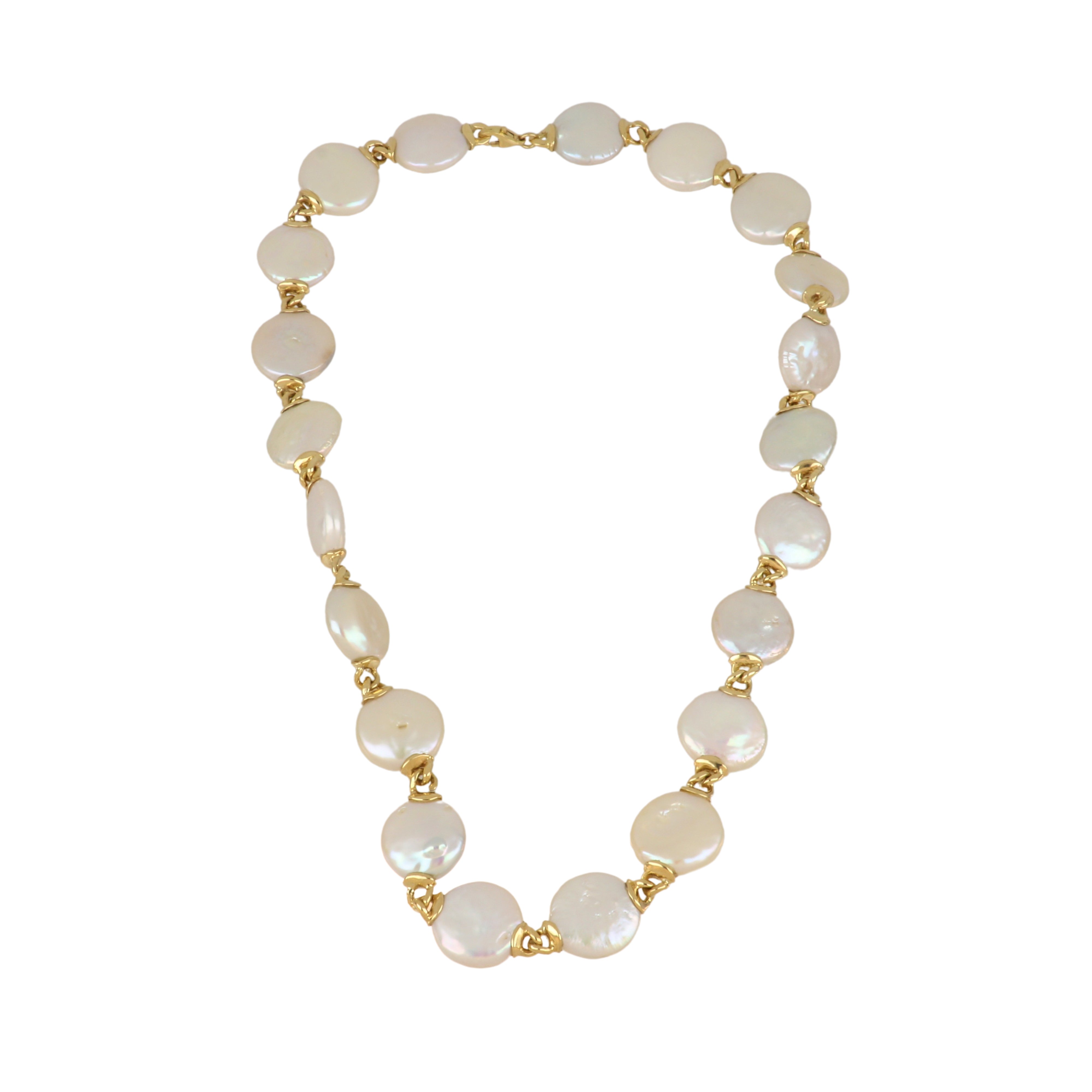 Estate 18K Gold Cultured Coin Pearl Necklace