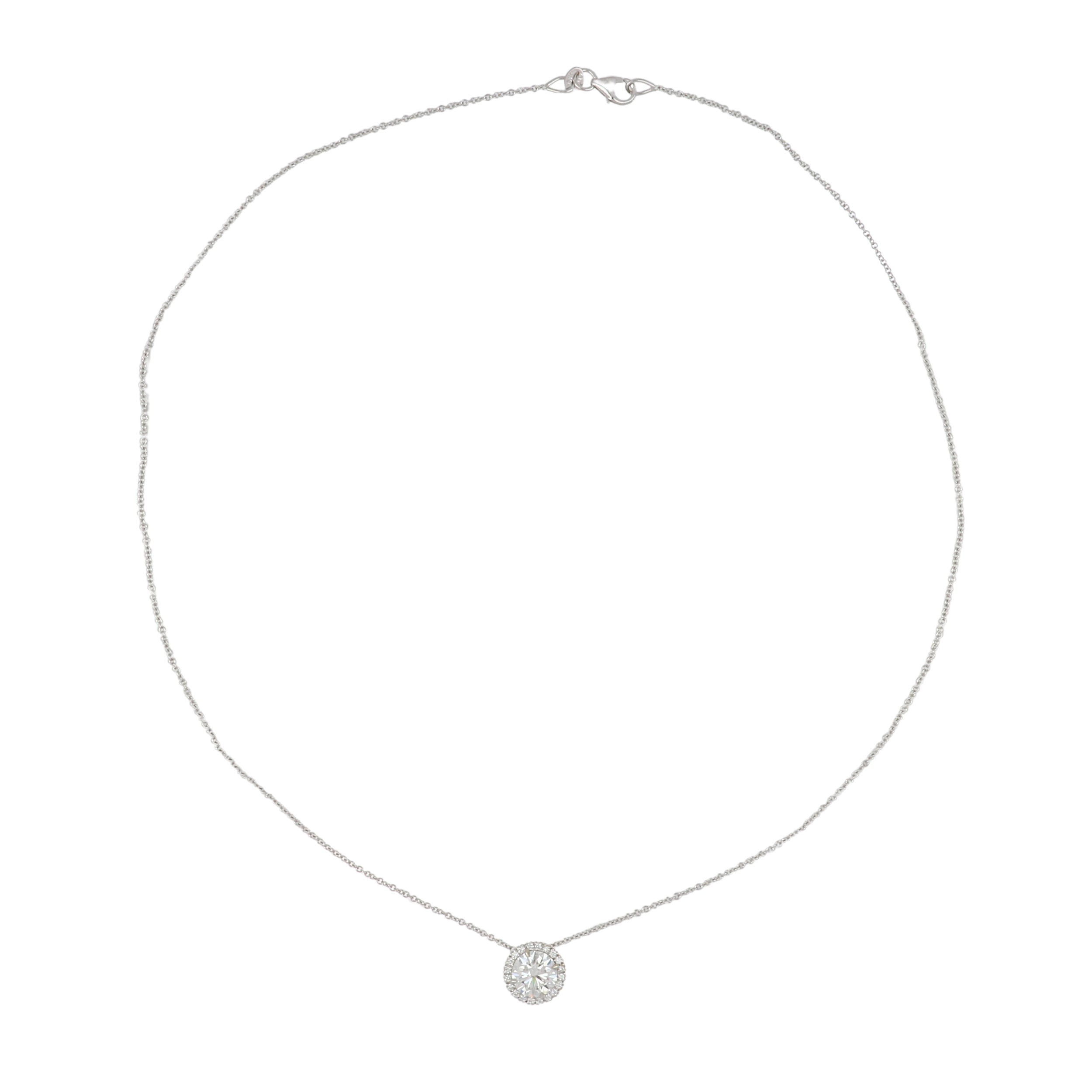 An estate modern, round brilliant-cut diamond slide necklace set in 18k white gold. Circa 2010.