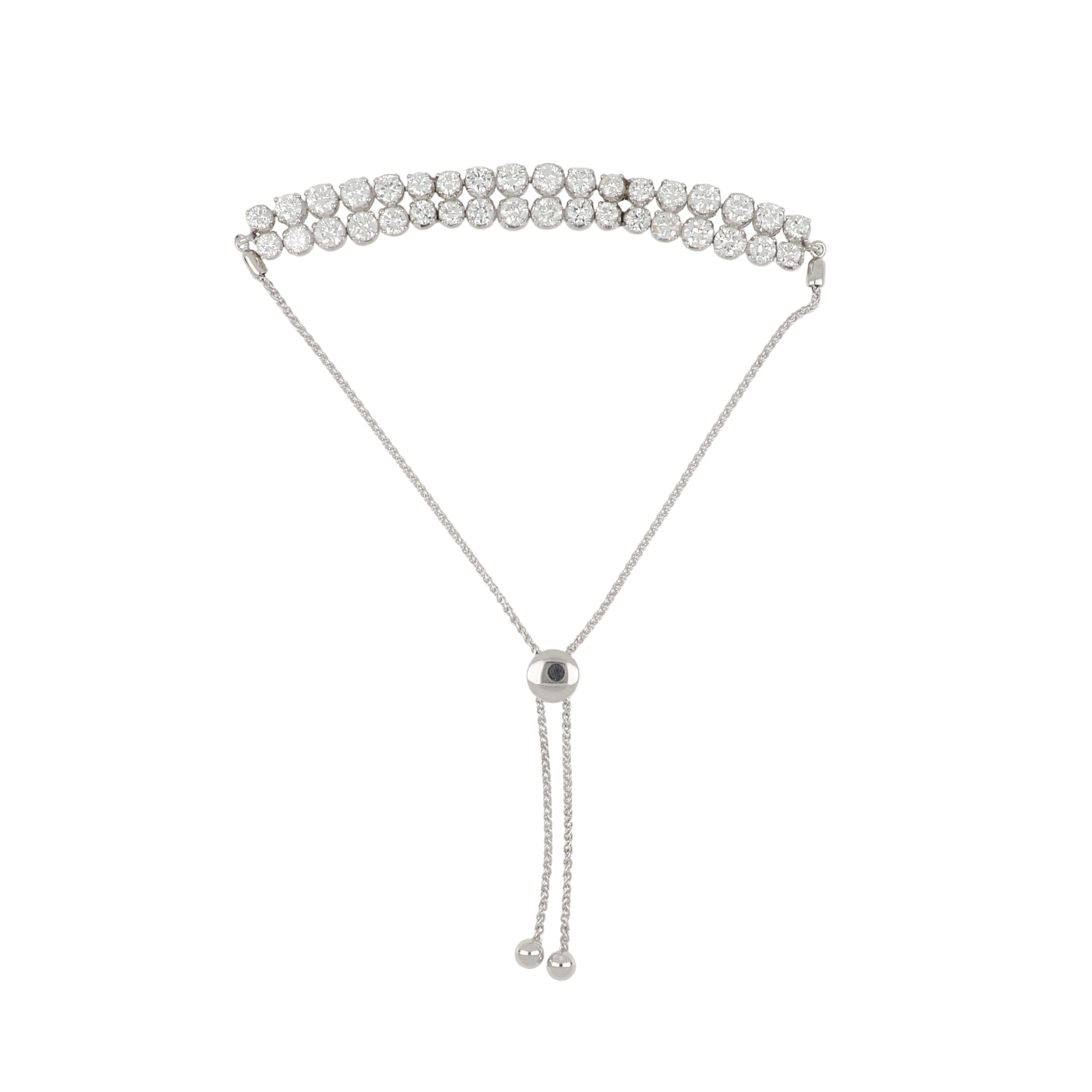 An estate round brilliant-cut diamond line bracelet, with adjustable chain, set in platinum.