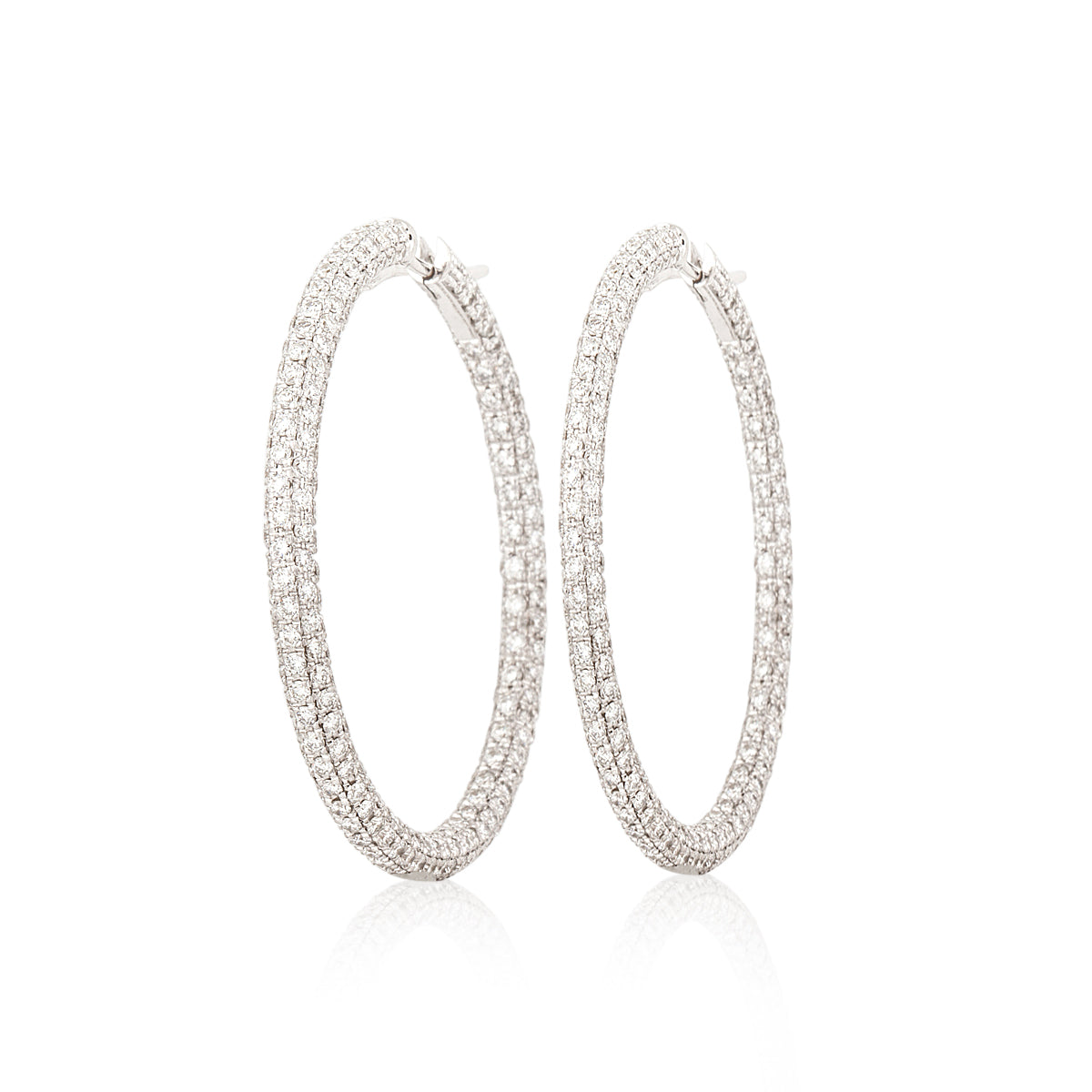 A pair of estate Garavelli diamond hoop earrings, set in 18K white gold.
