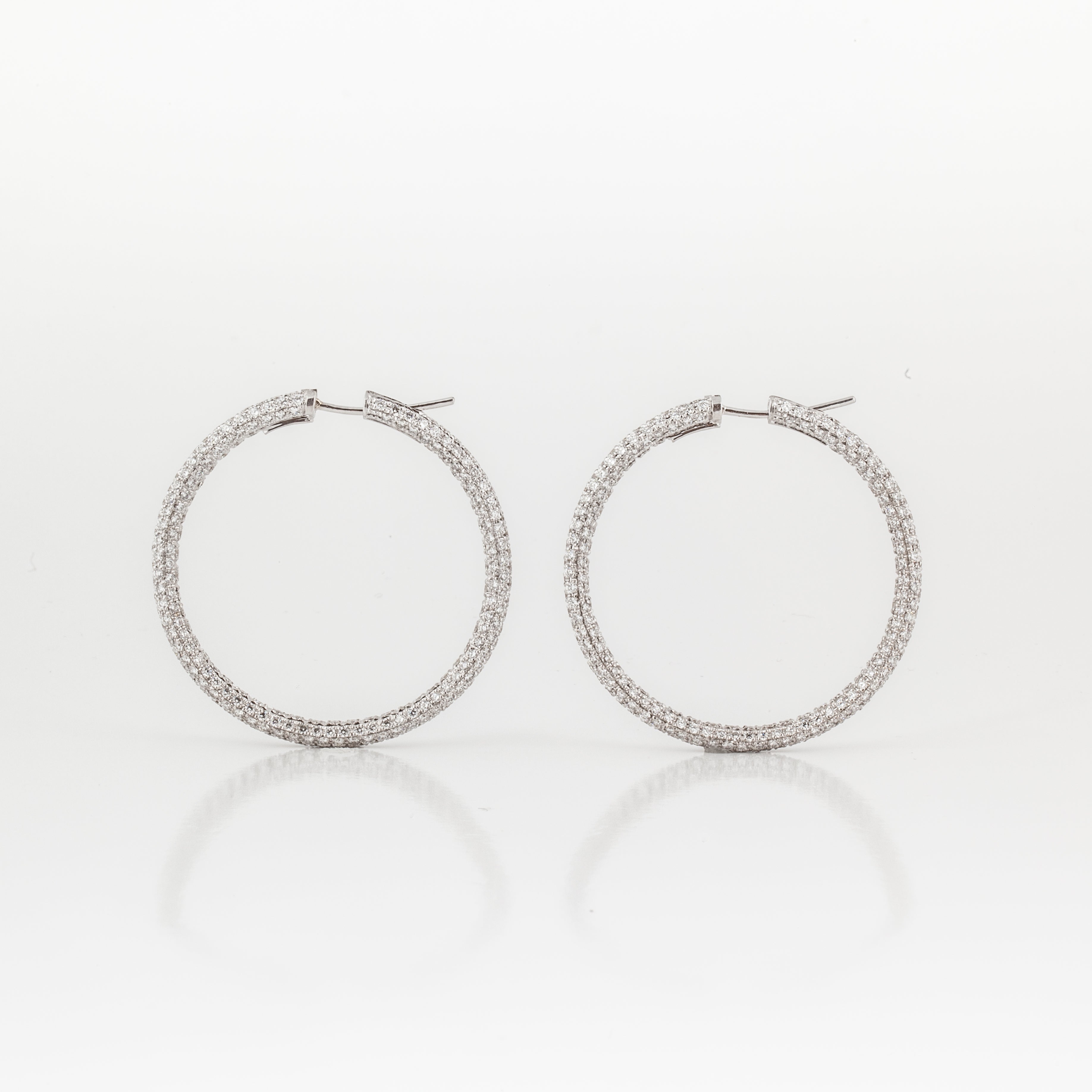 Estate Garavelli 18K White Gold Diamond Hoop Earrings