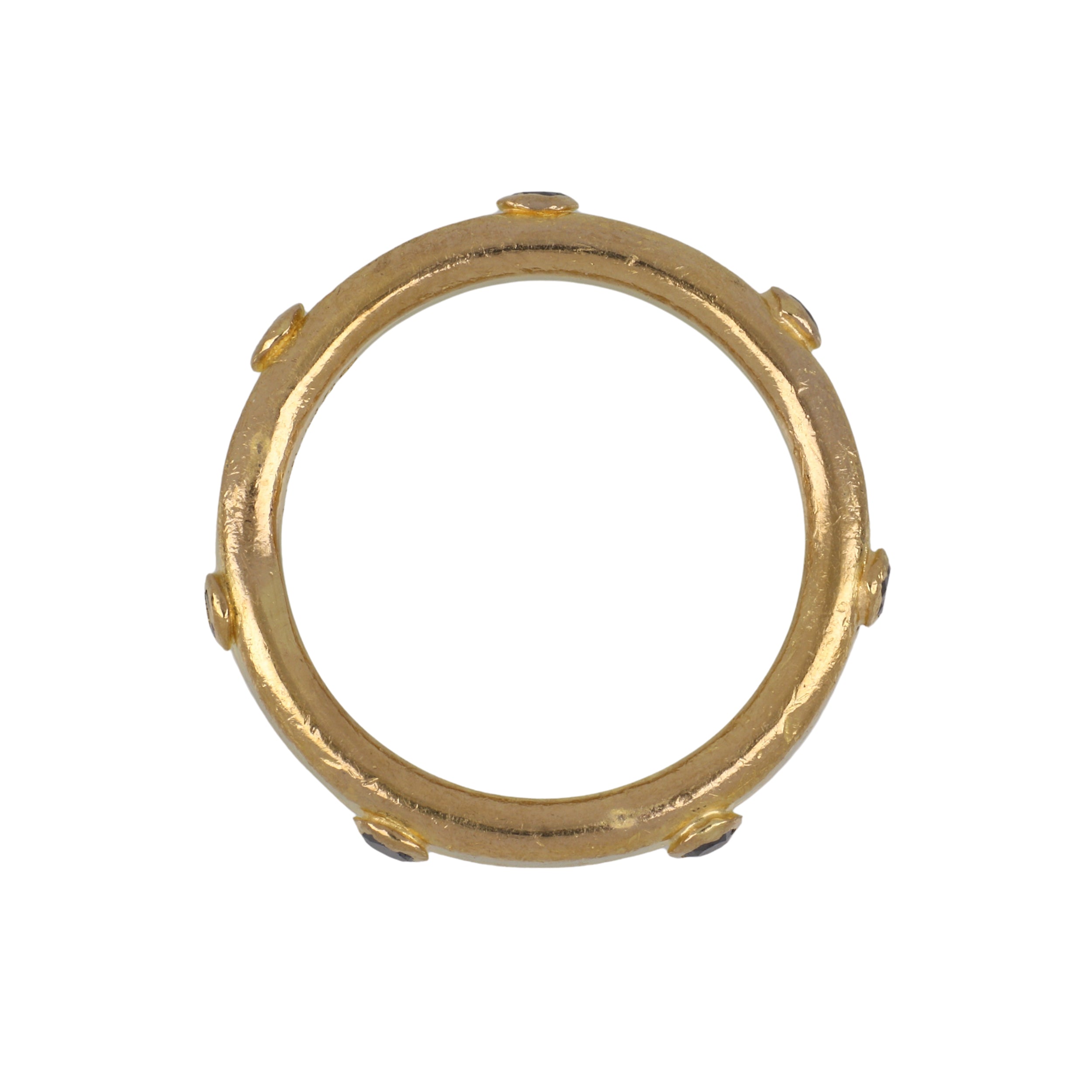 An estate Gurhan black round-cut diamond eternity band, set in 24K yellow gold. Circa 2010.