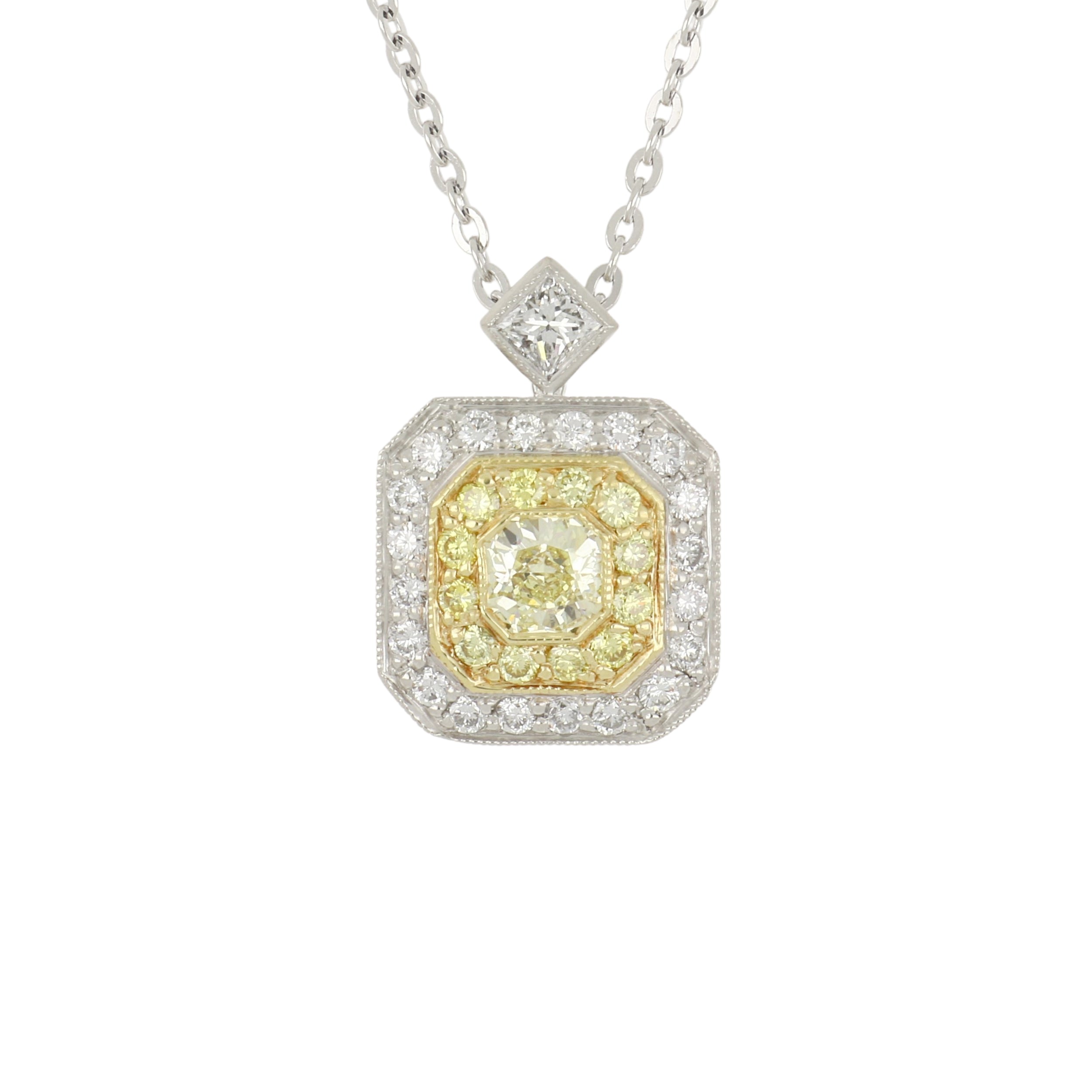 An estate J.B Star platinum and 18K yellow gold fancy yellow diamond necklace. Circa 2000.