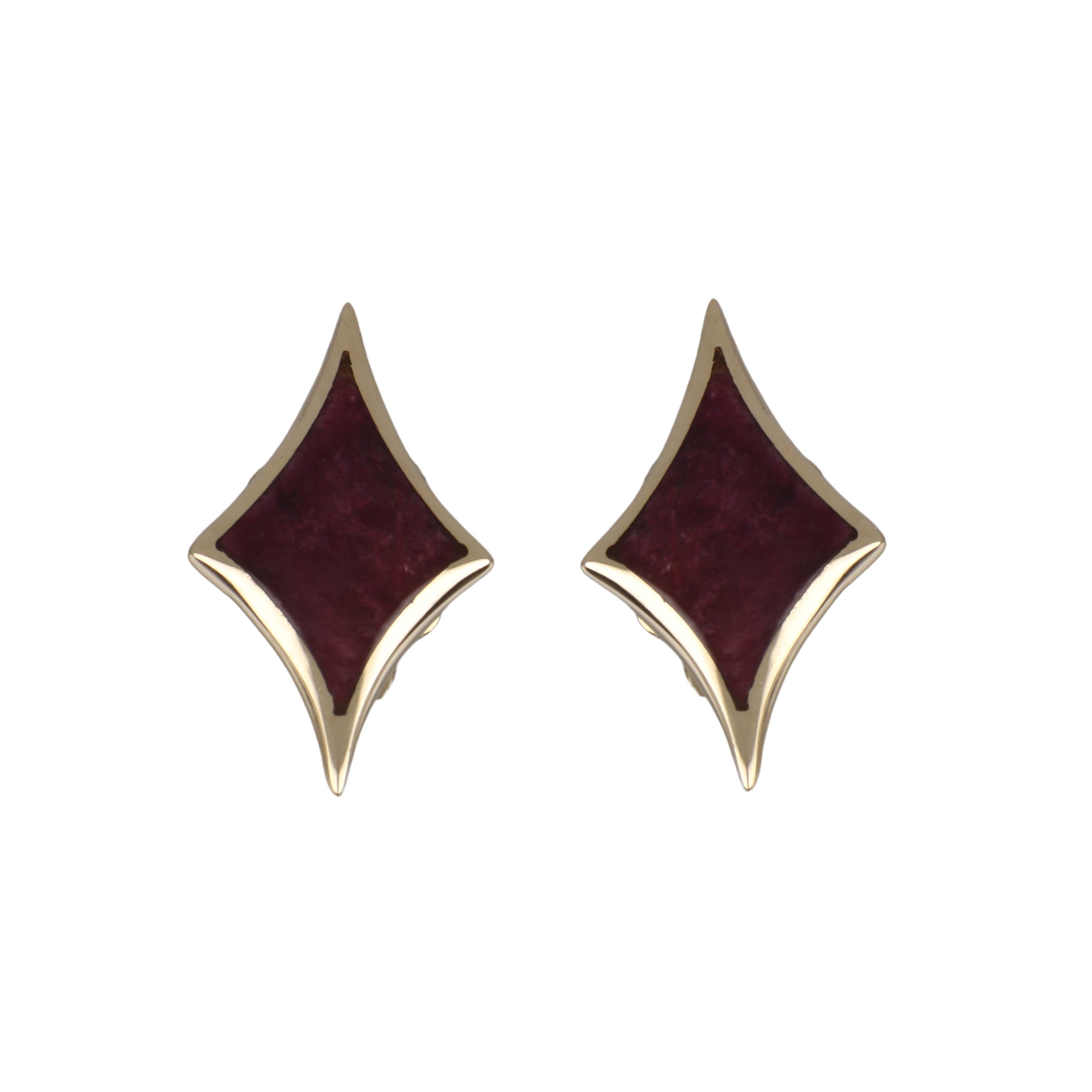 A pair of estate Kabana red "Spiny Oyster" inlay earrings, set in 14K yellow gold. Circa 2010.