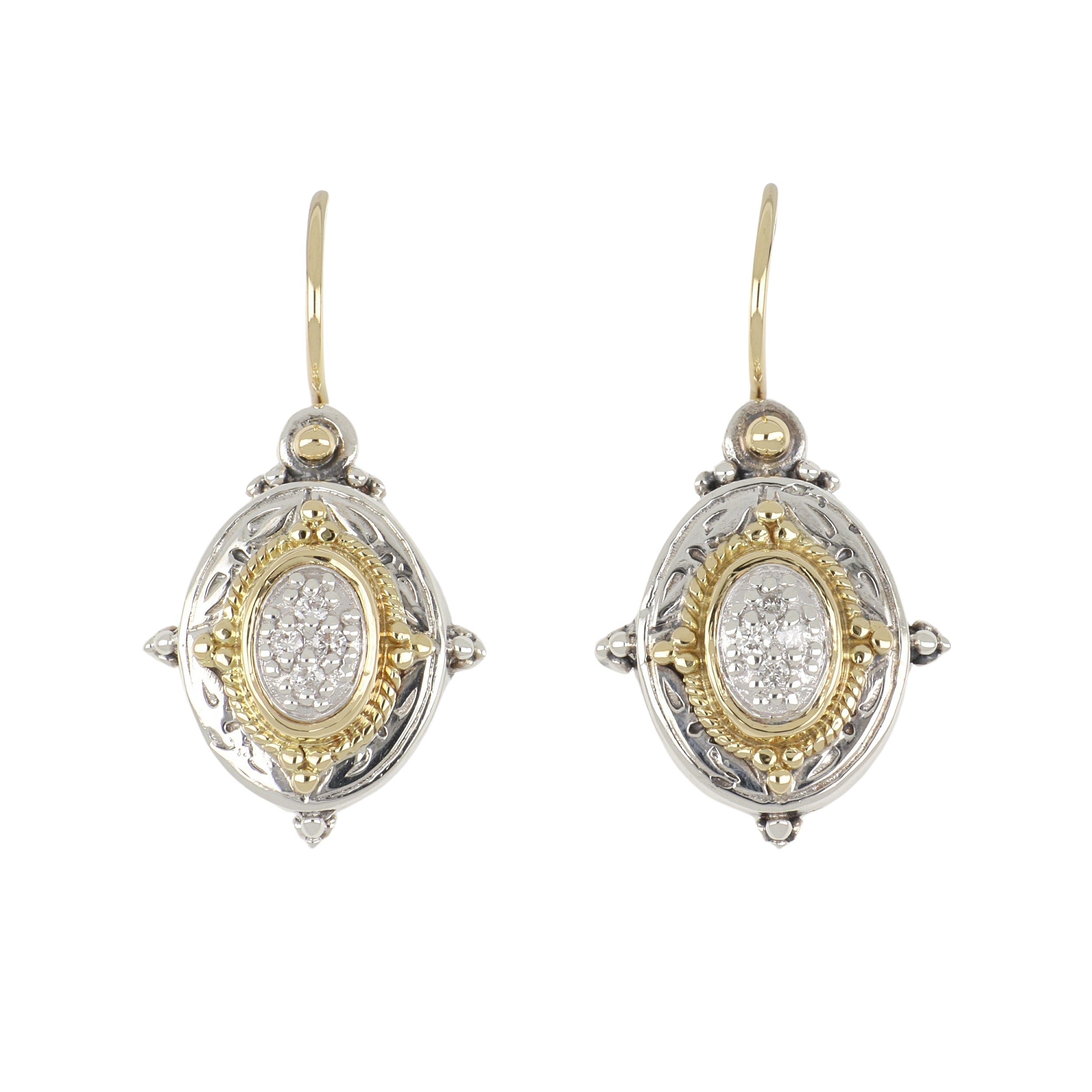 Estate Konstantino Two-Tone Diamond Drop Earrings