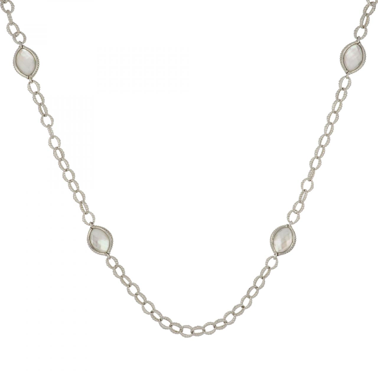 Estate Lagos Sterling Silver and 18K Gold Mother Of Pearl Station Necklace