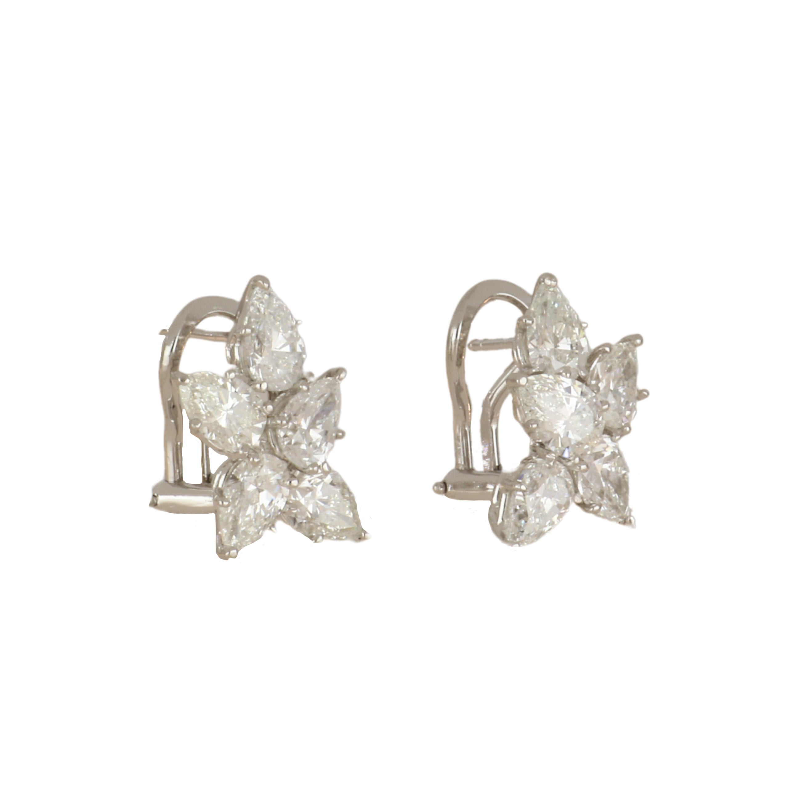 An estate pair of platinum pear shape diamond cluster earrings. Circa 2000.