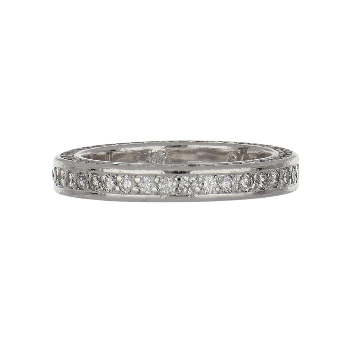 An estate three side pave round brilliant-cut diamond eternity band set in platinum. Circa 2000.