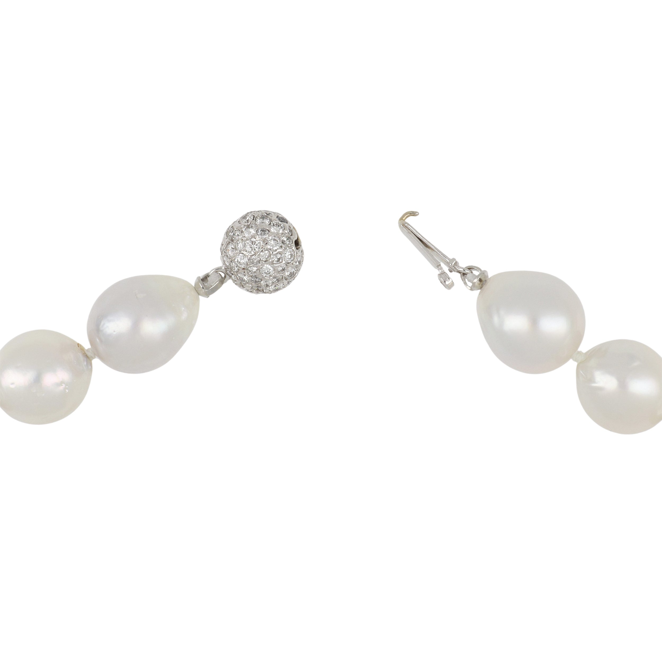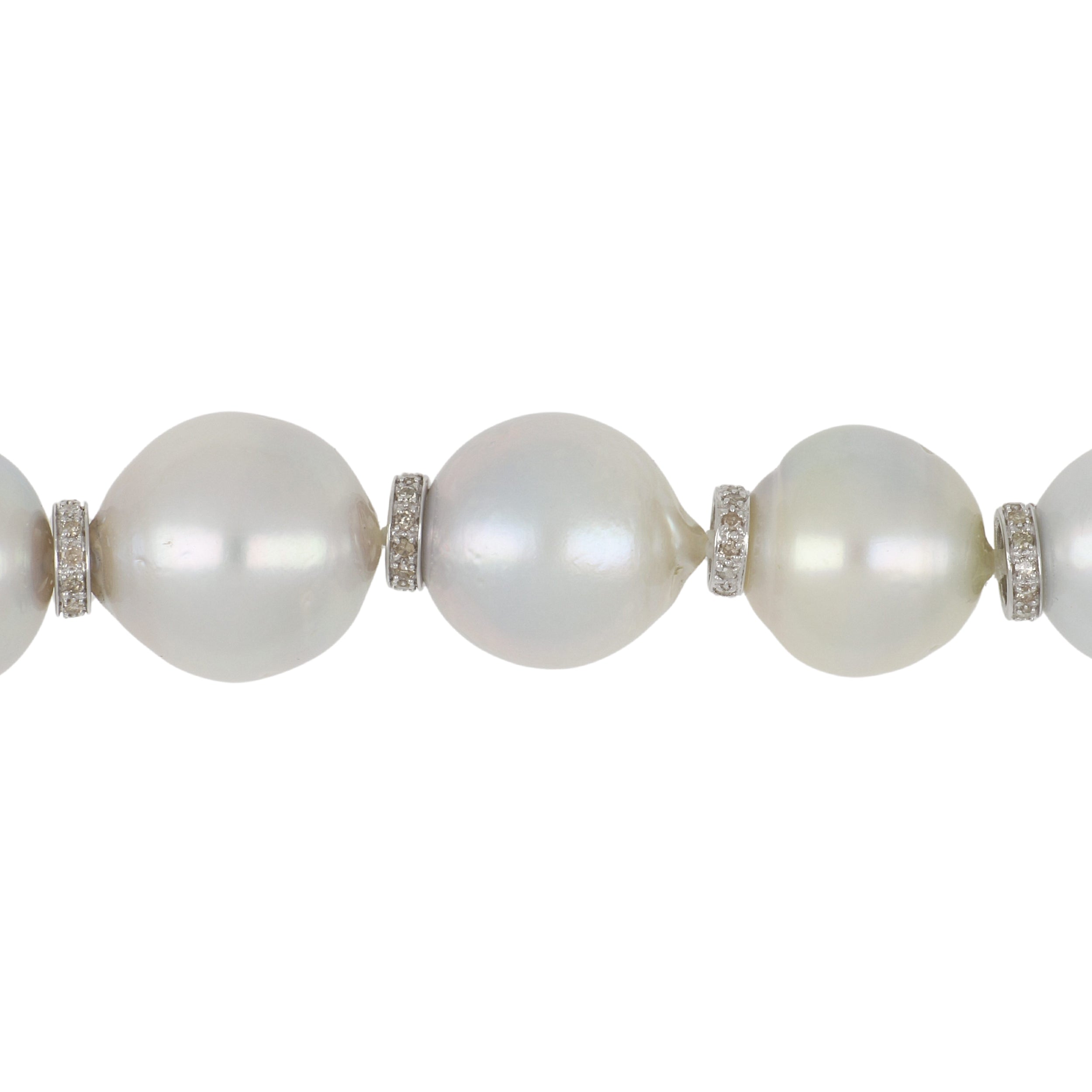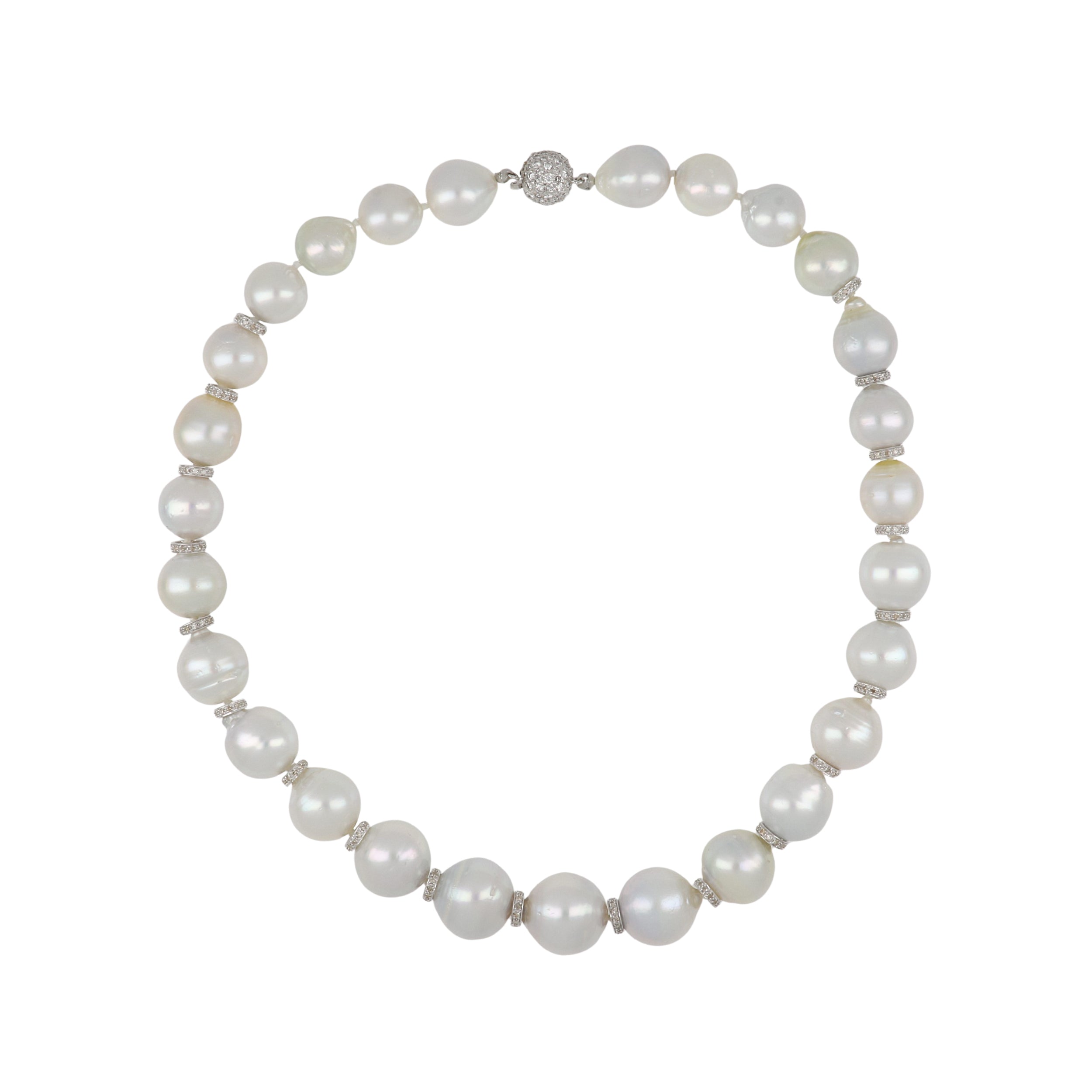 An estate slightly graduated baroque South Sea pearl necklace with single-cut diamond rondells, set in 18K white and yellow gold. Circa 2000.