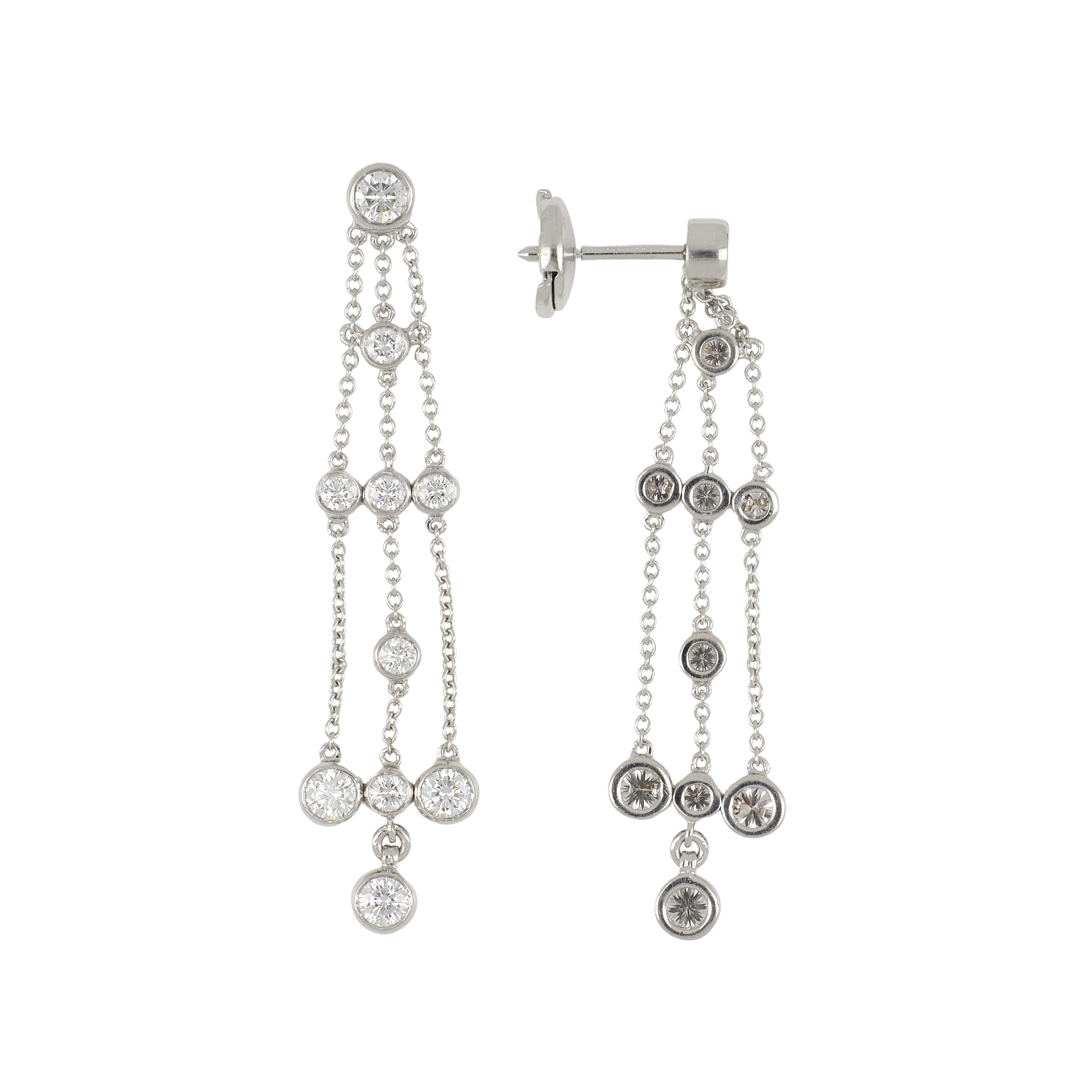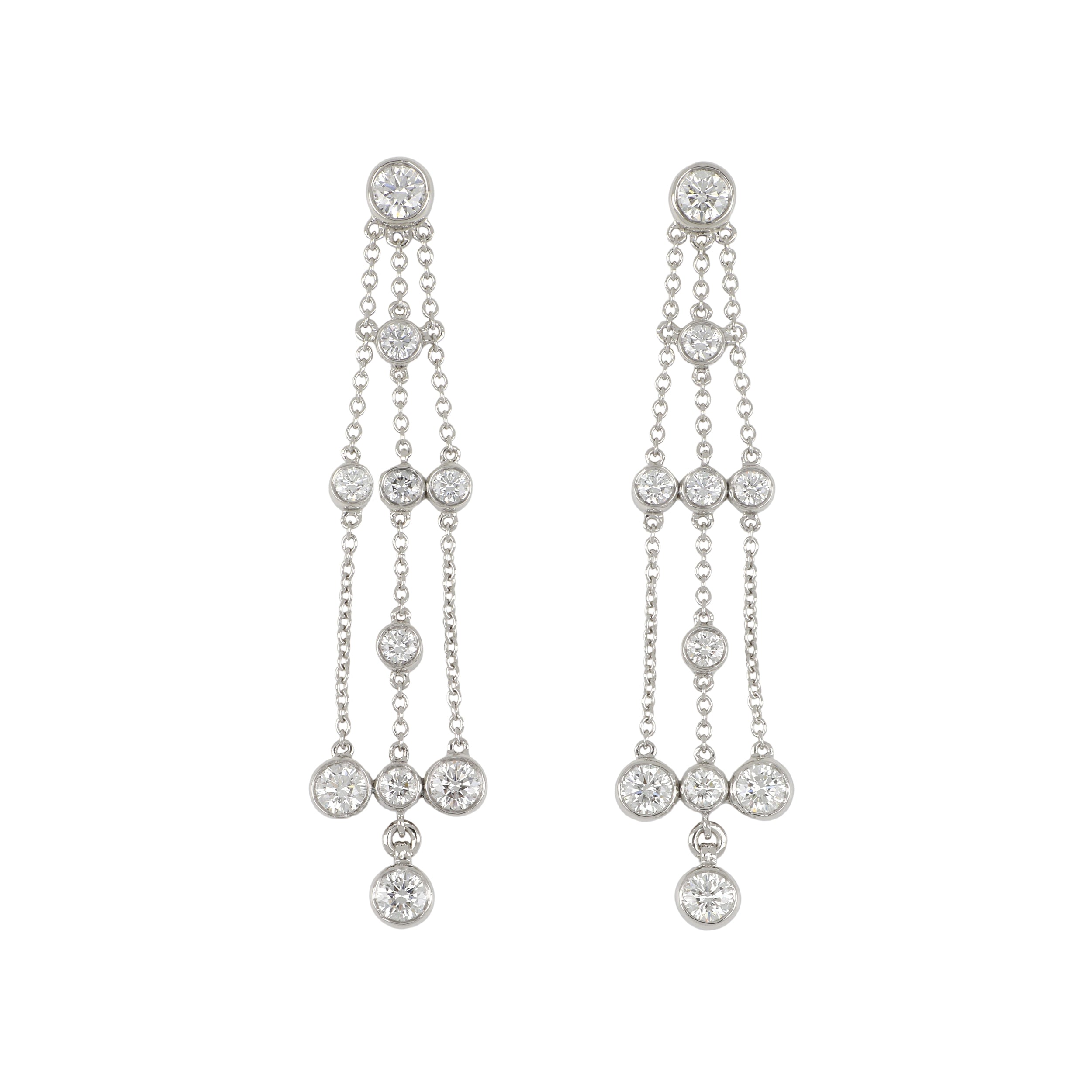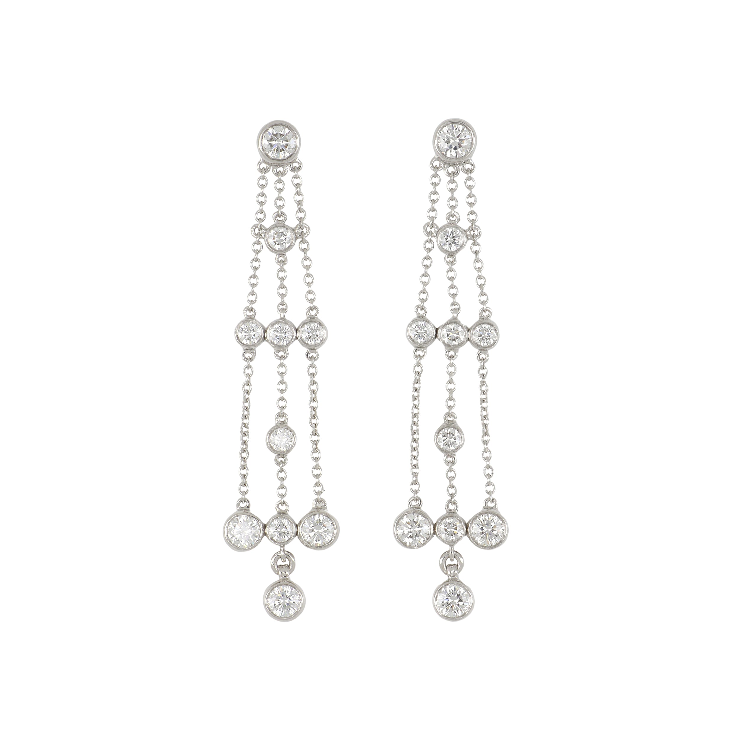 A pair of estate Tiffany & Co platinum and diamond chain drop earrings. Circa 2010. Signed: Tiffany & Co.