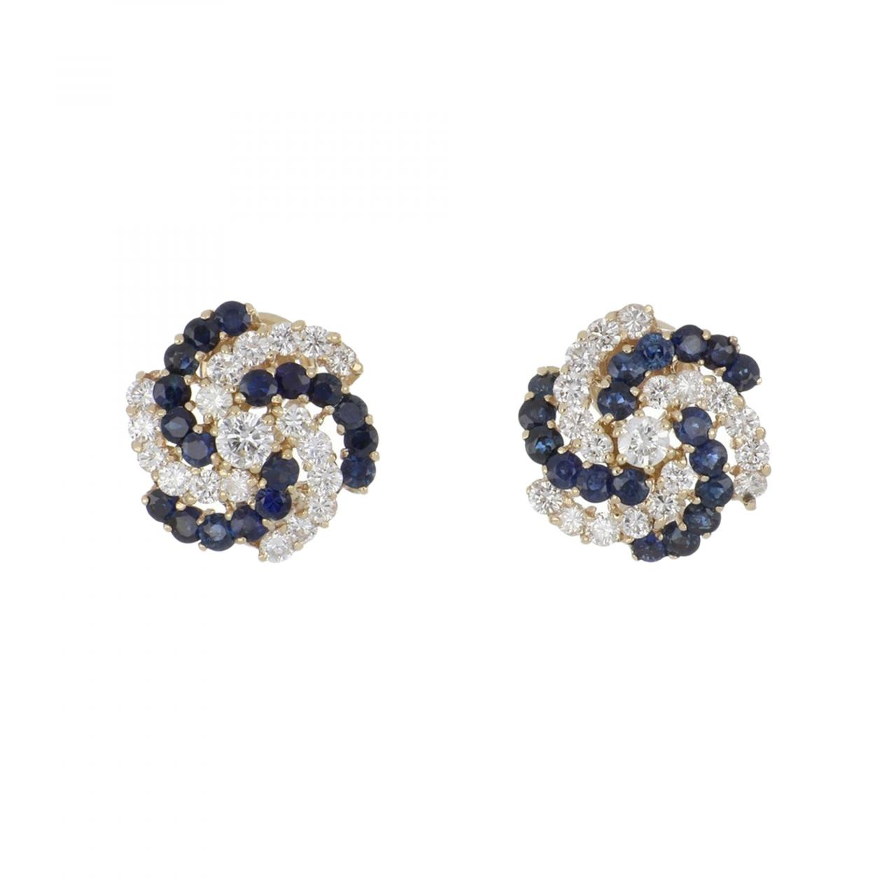 A vintage 14 karat yellow gold sapphire & diamond pinwheel earrings. Circa1990