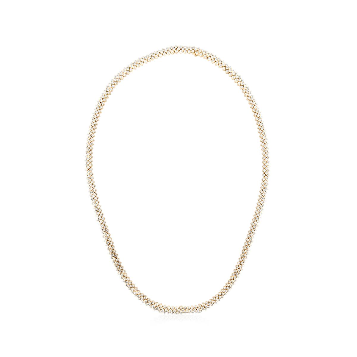 An estate vintage, round diamond riviera link necklace set in 18K yellow gold. Circa 1990.