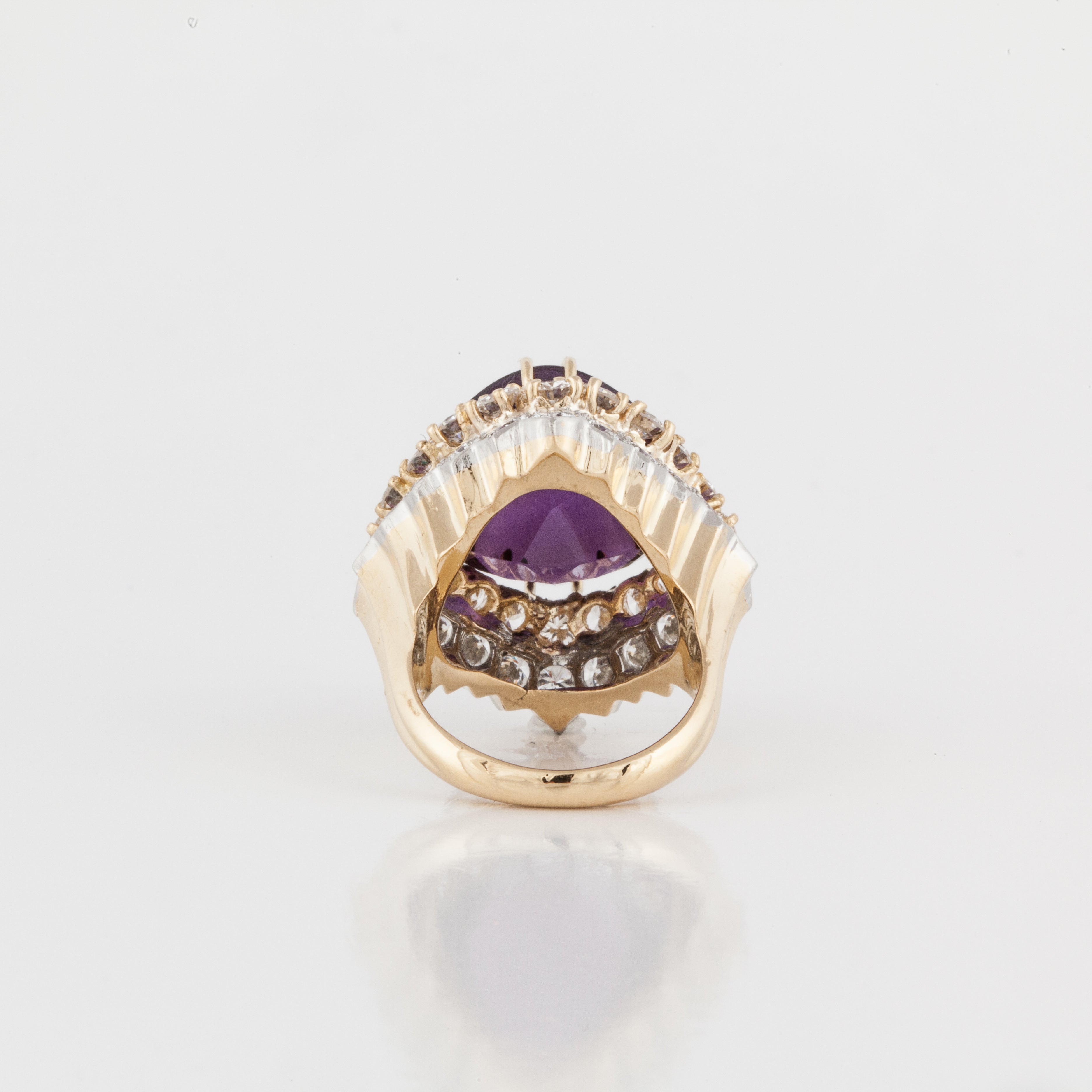 Vintage 1970s 18K Gold Cabochon Amethyst Ring with Diamonds