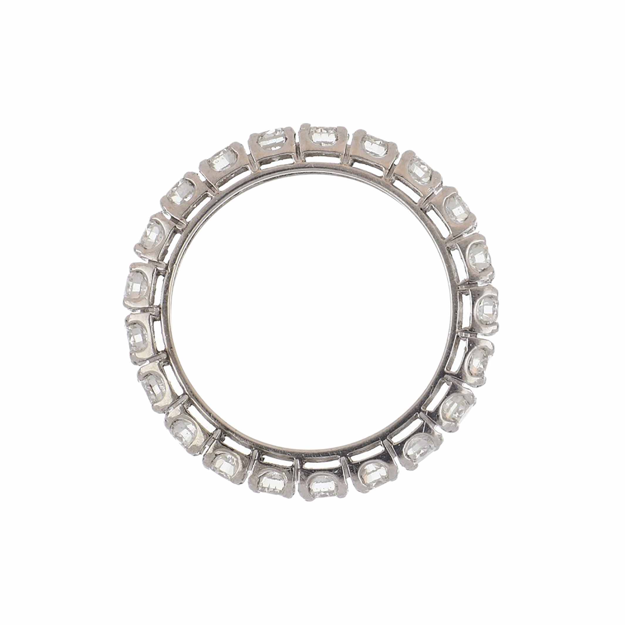 A vintage four prong-set round brilliant-cut diamond eternity band in 18K white gold. Circa 1990.