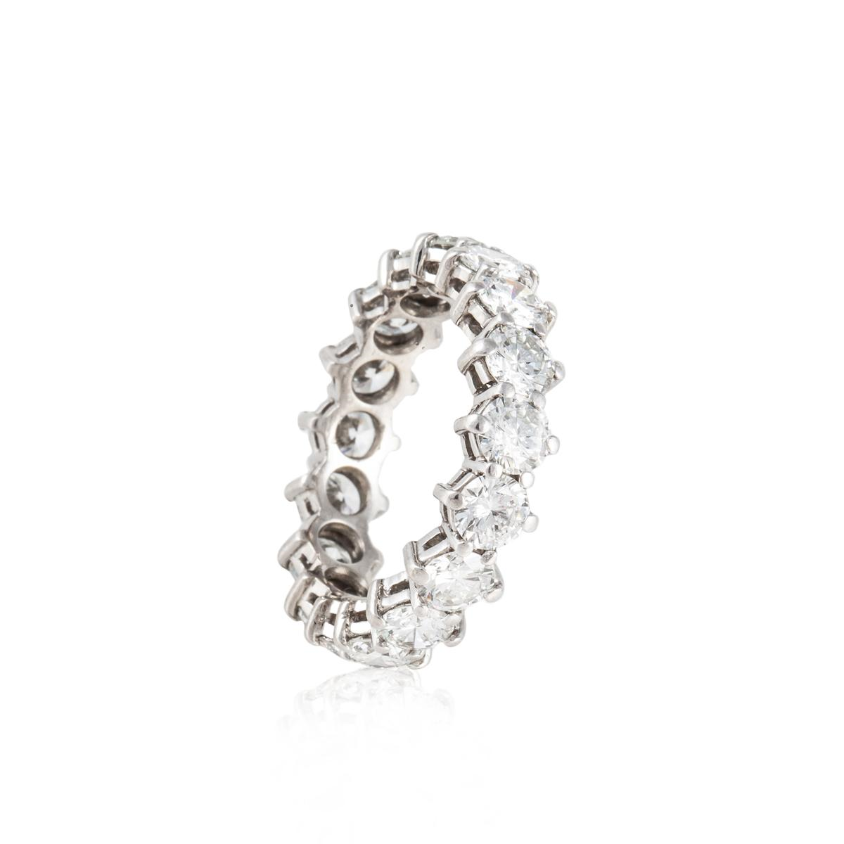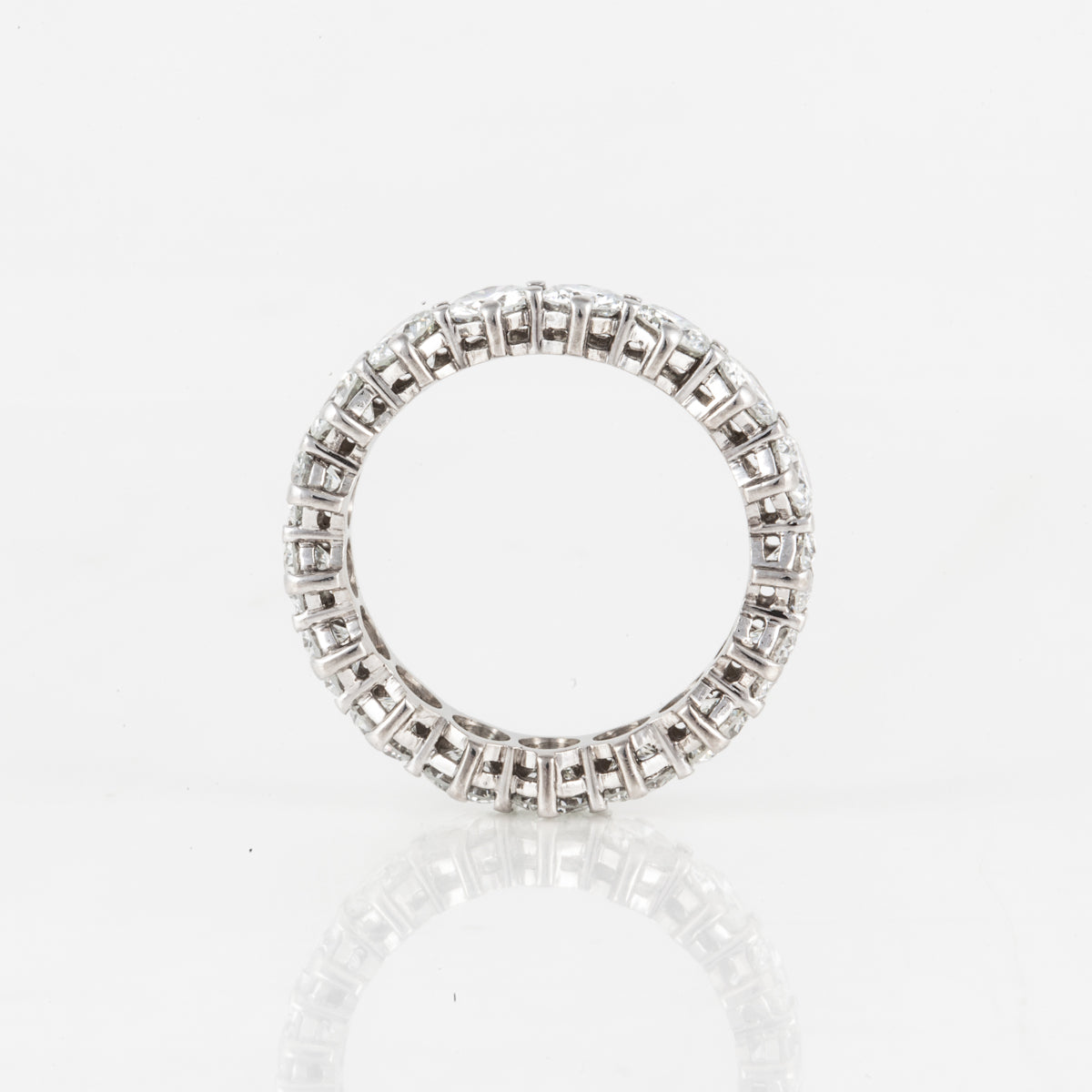 A vintage prong-set round brilliant-cut diamond eternity band, set in platinum. Circa 1990.