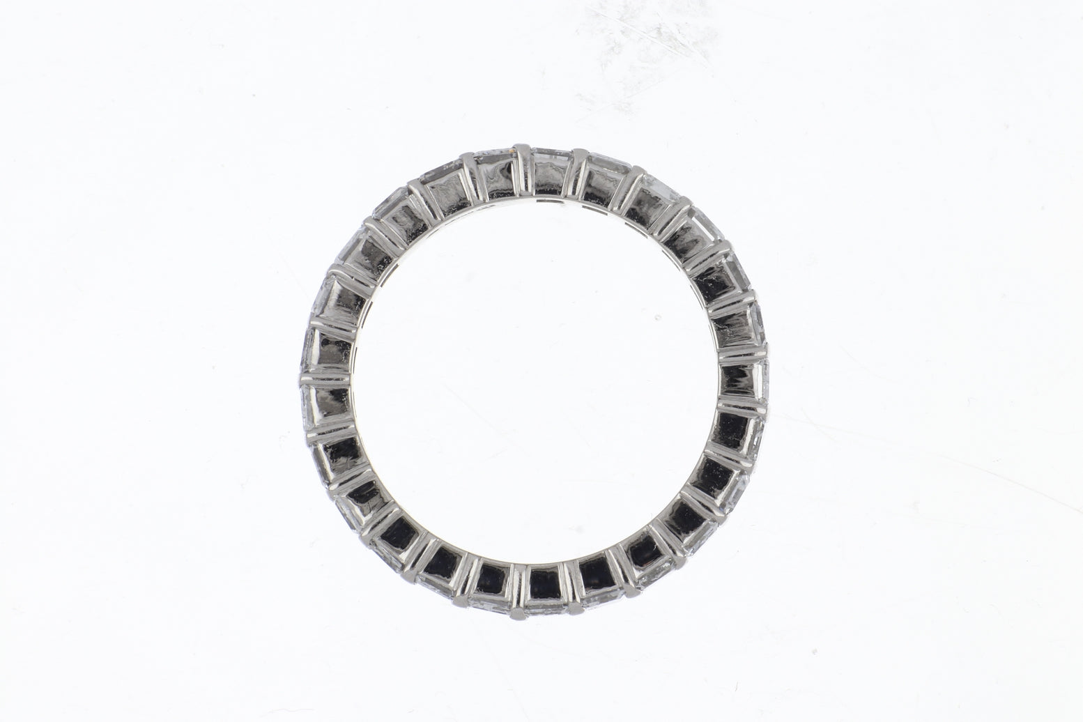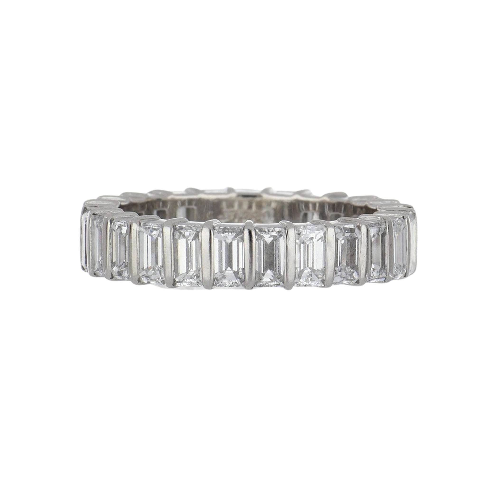 A vintage bar-set emerald-cut diamond eternity band in platinum. Circa 1990.