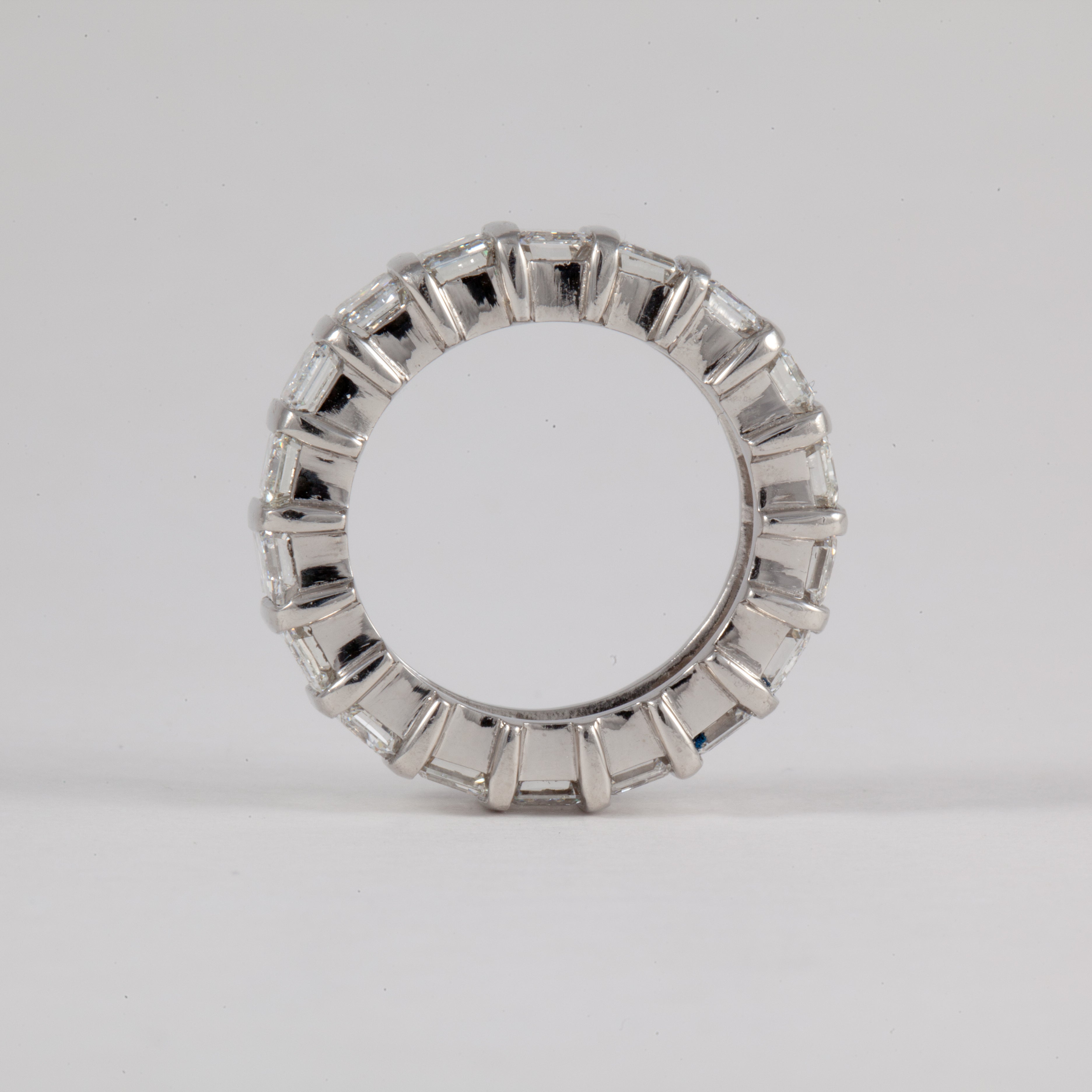 A vintage bar-set emerald-cut diamond eternity band in platinum. Circa 1990.