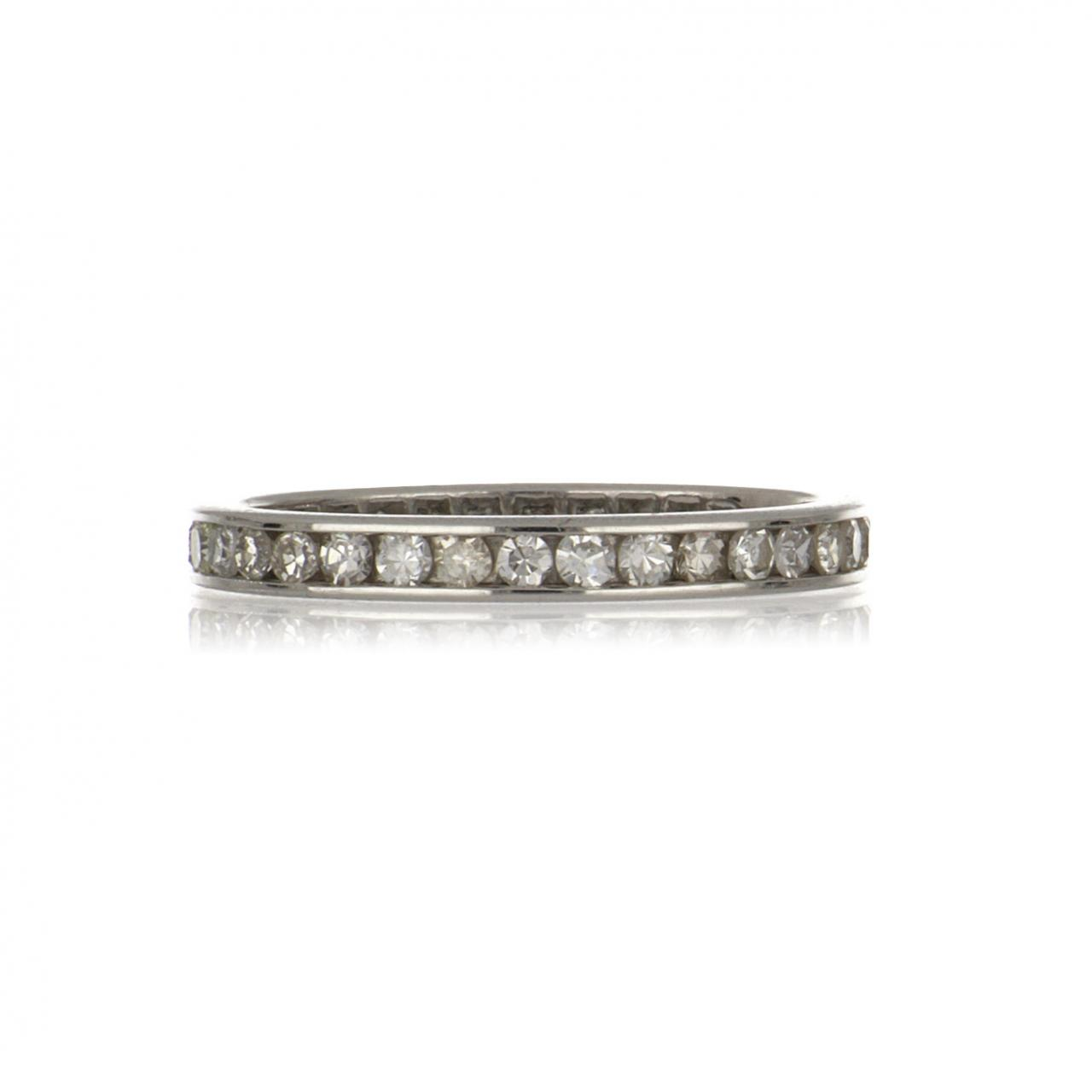 A vintage channel-set single-cut diamond eternity band set in platinum. Circa 1990s.