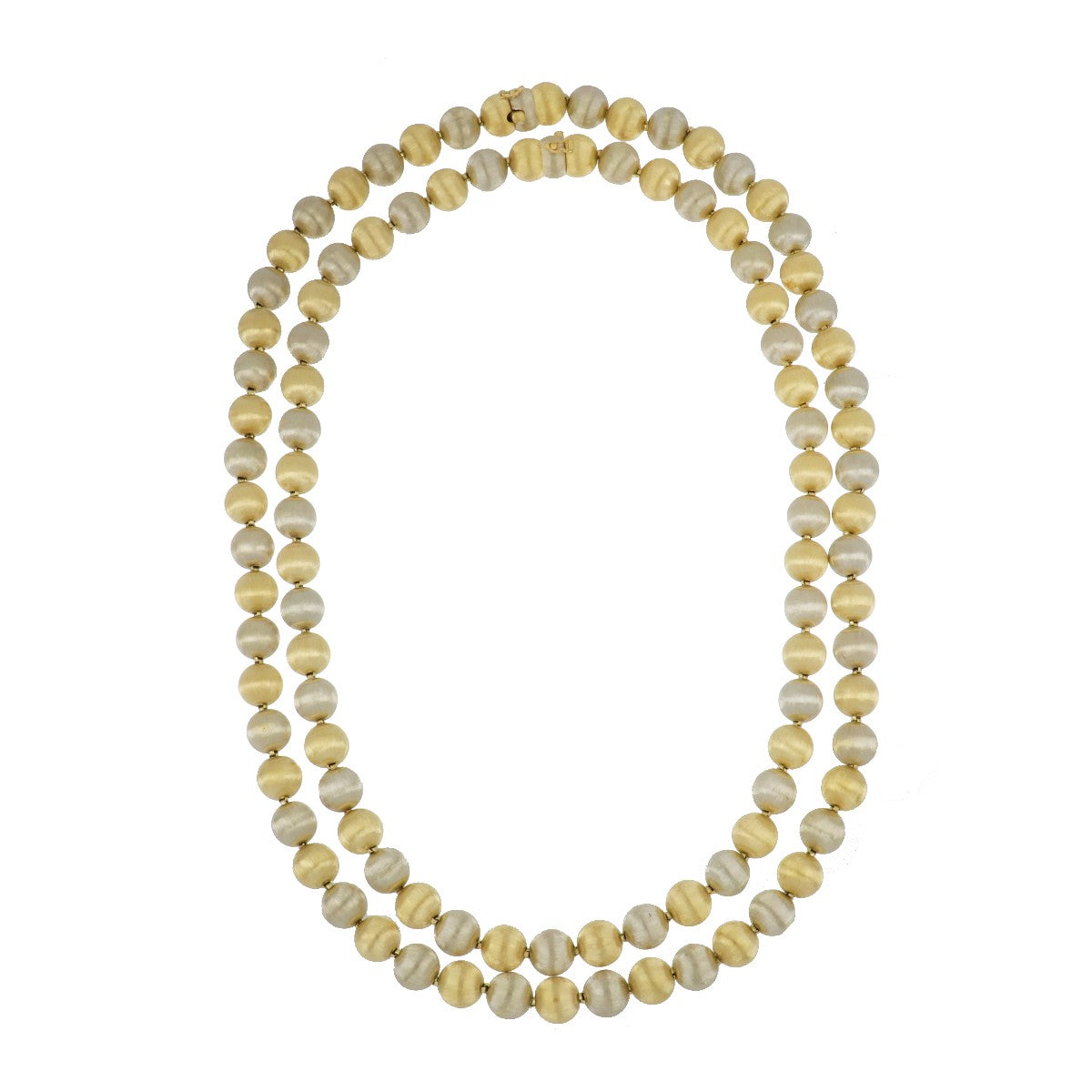 A vintage Buccellati 'Rigato' collection, 18k yellow and white gold textured bead necklace.