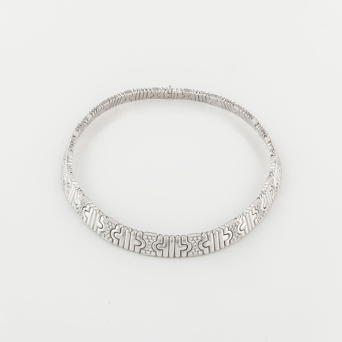 A vintage Bulgari 18K white gold diamond Parentesi necklace. Circa 1990.