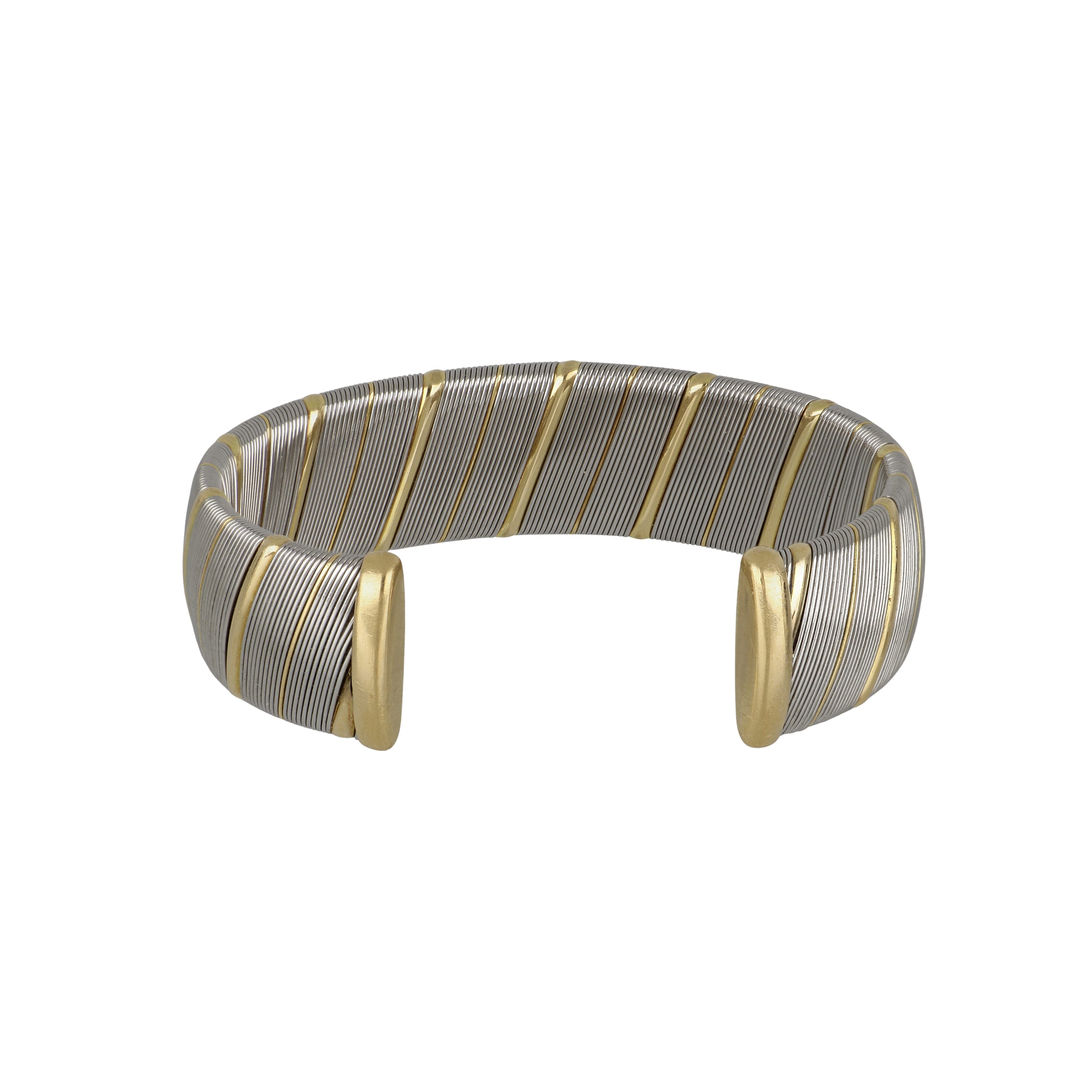A vintage Cartier stainless and 18K yellow gold wide striped cuff bracelet. Circa 1990.